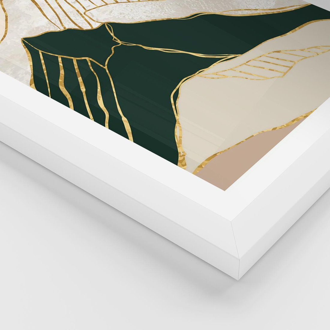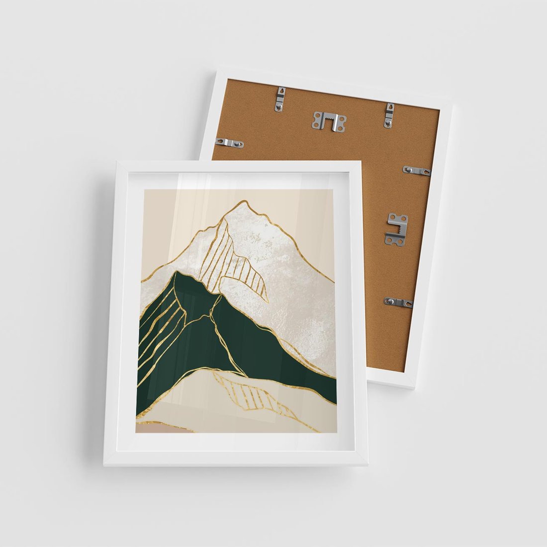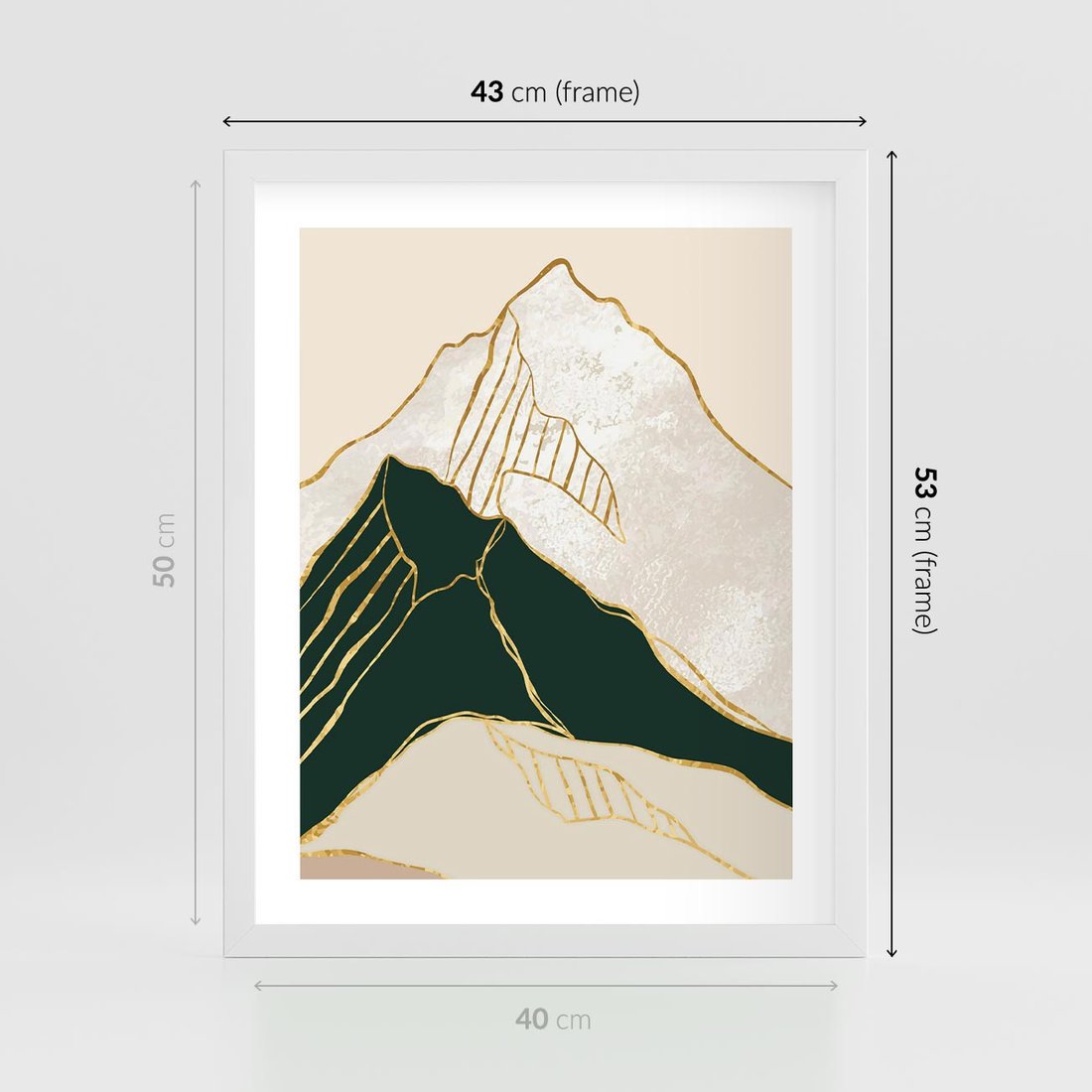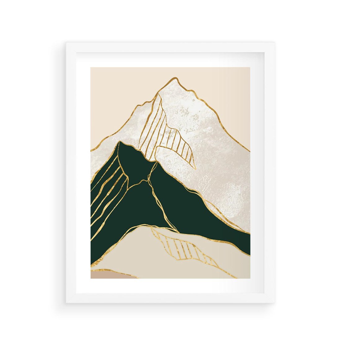 Plakat w ramie 40x50 - Minimalistyczne Góry: Złota Sztuka Natury - minimalistyczna grafika, góry - rama biała