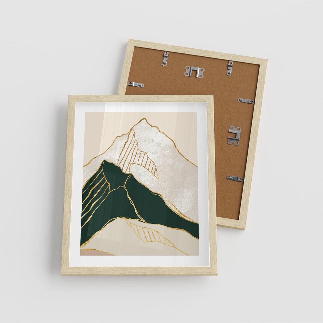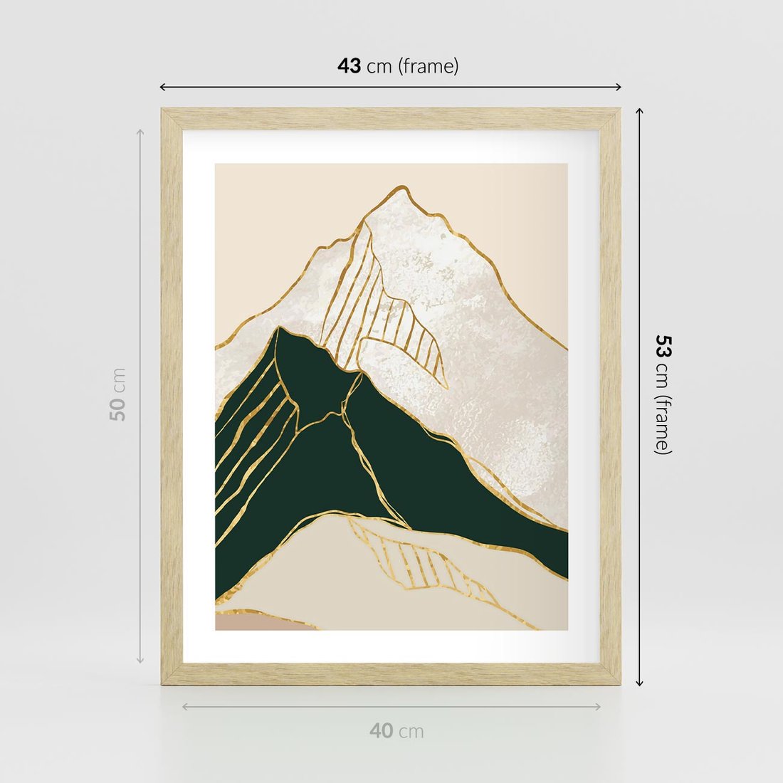 Plakat w ramie 40x50 - Minimalistyczne Góry: Złota Sztuka Natury - minimalistyczna grafika, góry - rama drewno