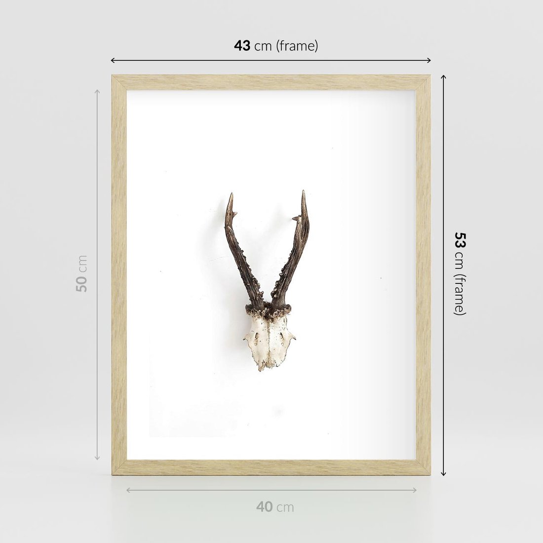 Plakat w ramie 40x50 - Minimalistyczne Poroże Jelenia - poroże jelenia na ścianie, minimalizm - rama drewno