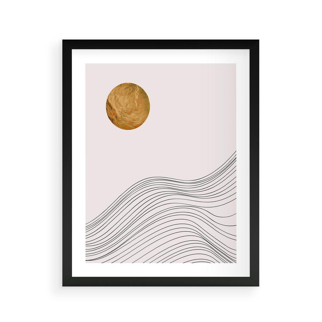 Plakat w ramie 40x50 - Minimalistyczne Słońce: Blask i Złoto - grafika, minimalizm - rama czarna