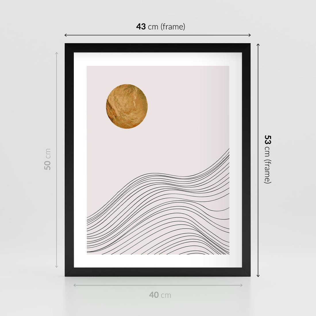 - Plakat w ramie 40x50 - Minimalistyczne Słońce: Blask i Złoto