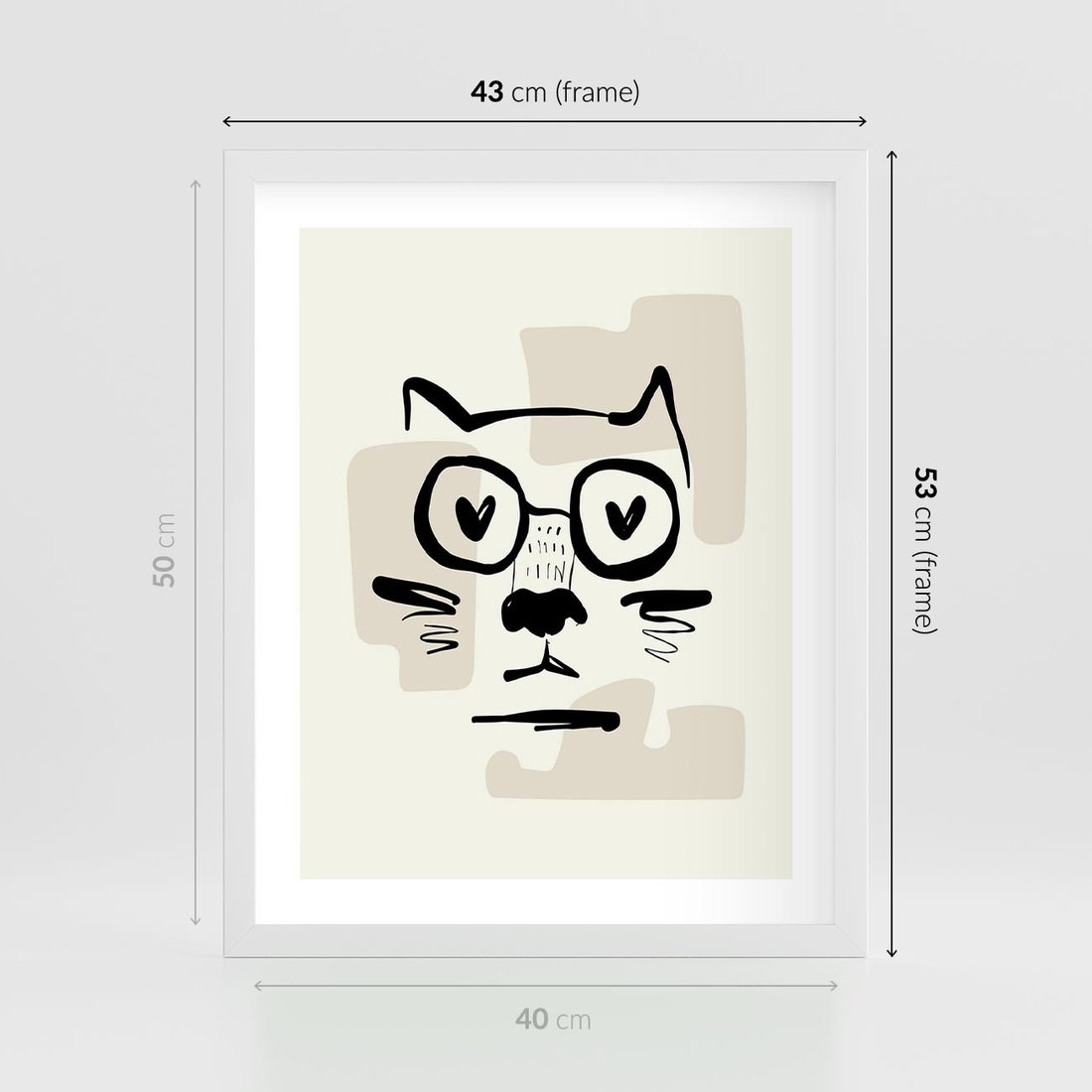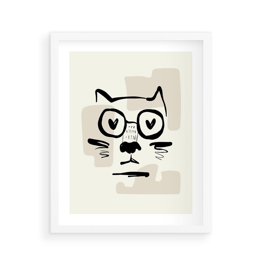 Plakat w ramie 40x50 - Minimalistyczny Kot: Czarna Kreska - kot, grafika - rama biała