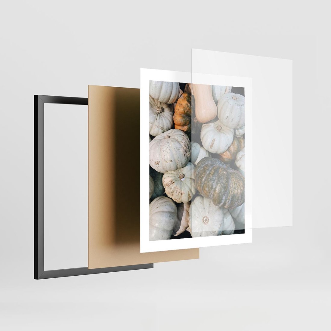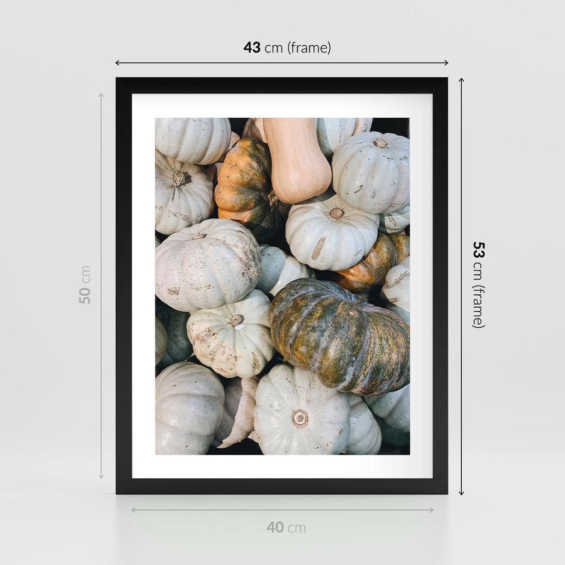 Plakat w ramie 40x50 - Minimalizm Jesieni - dynie, białe - rama czarna