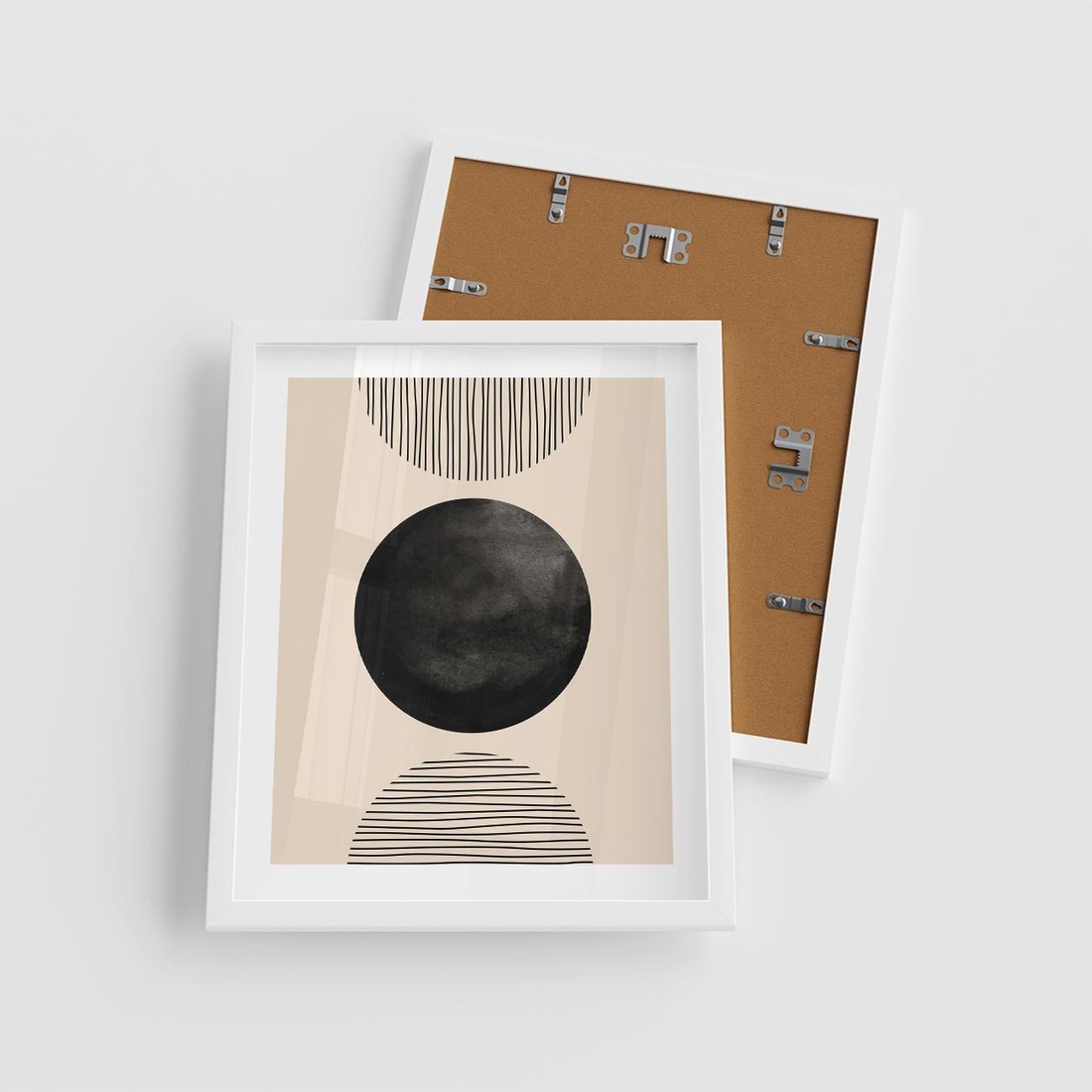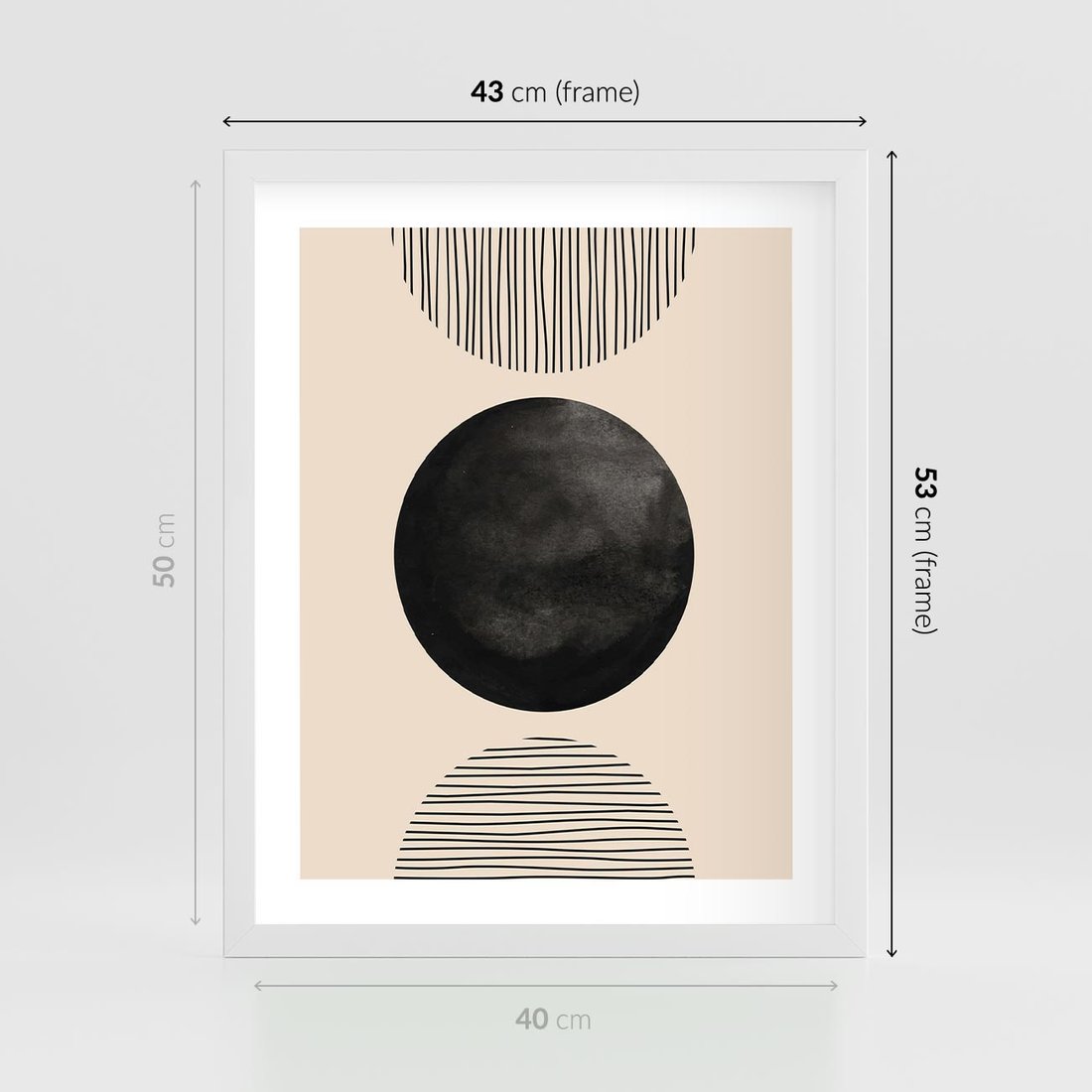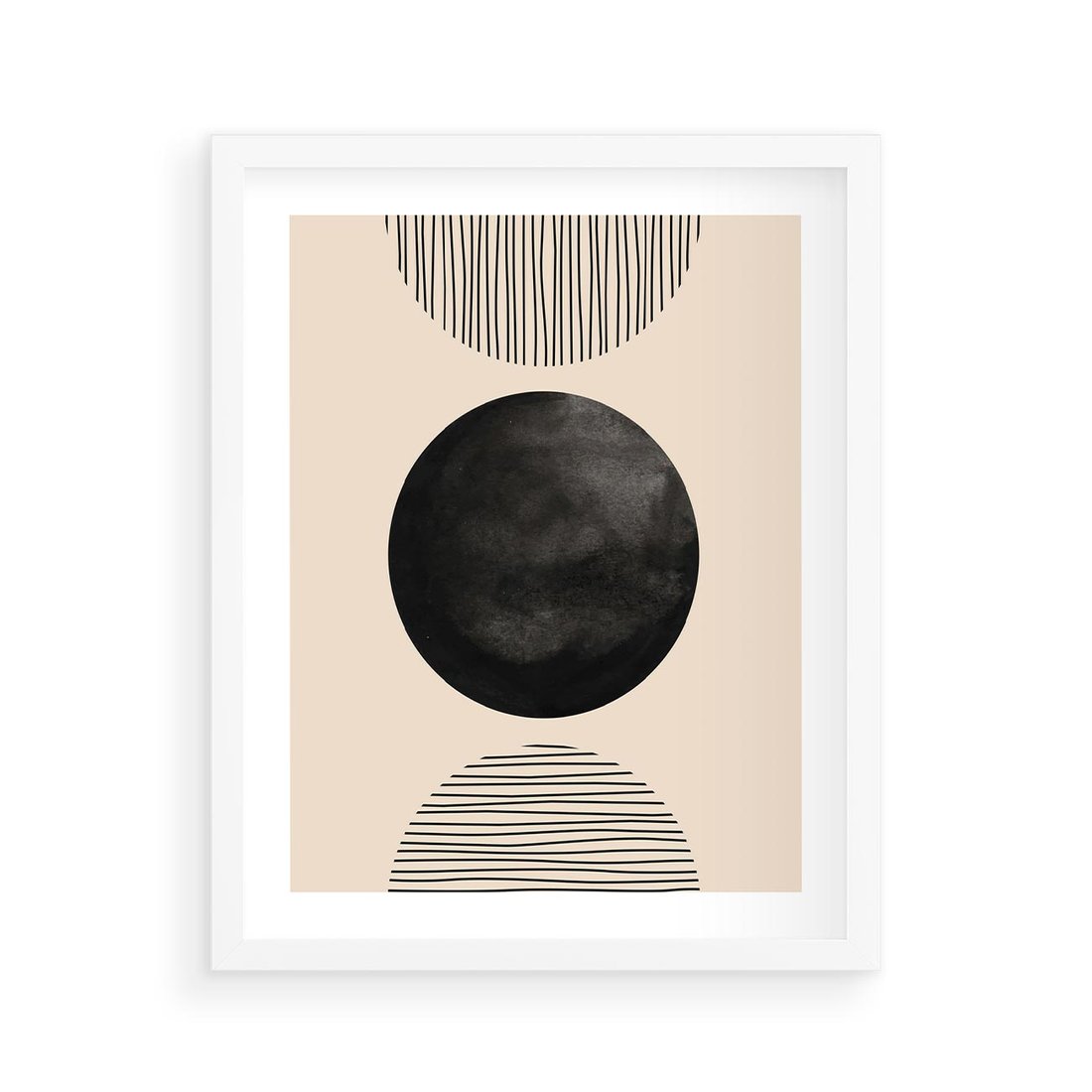 Plakat w ramie 40x50 - Minimalizm w Kształtach - geometryczny graficzny obraz, czarne koło - rama biała