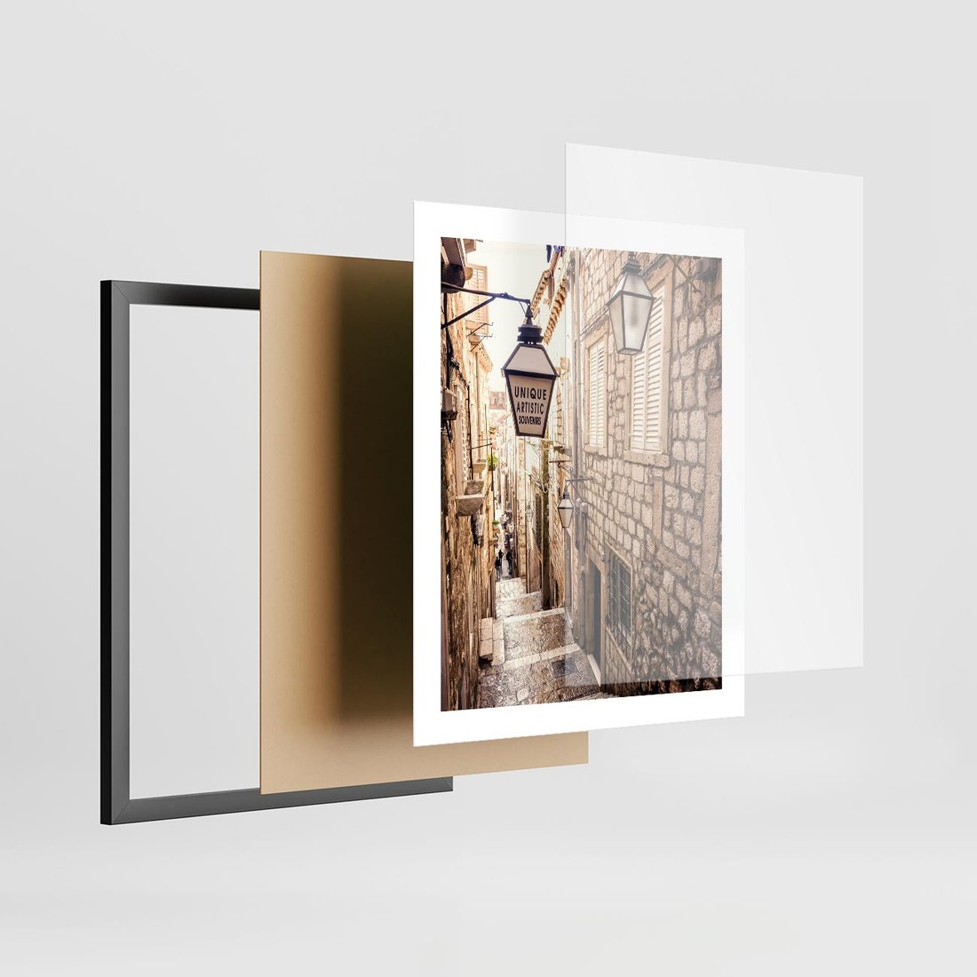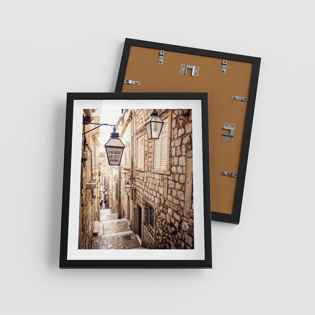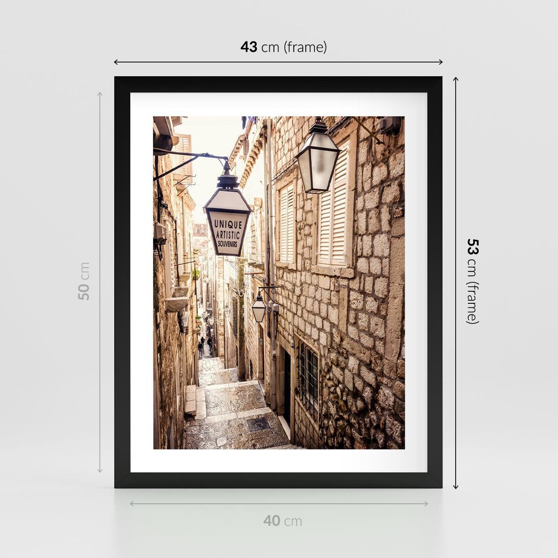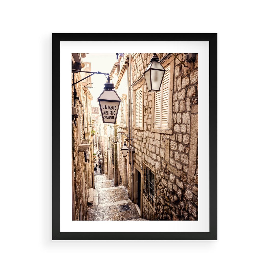 Plakat w ramie 40x50 - mistyczna podróż - uliczka, perspektywa - rama czarna