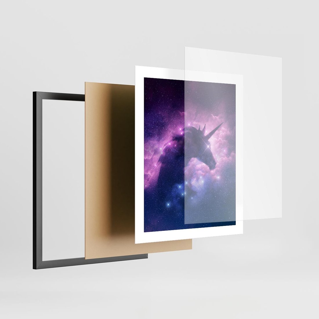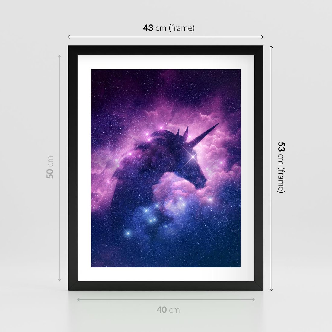 Plakat w ramie 40x50 - Mityczna podróż - kosmos, jednorożec - rama czarna