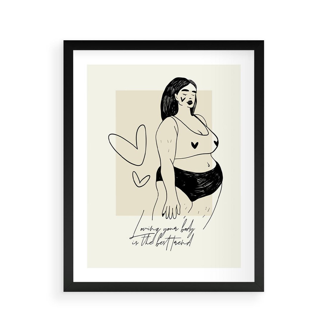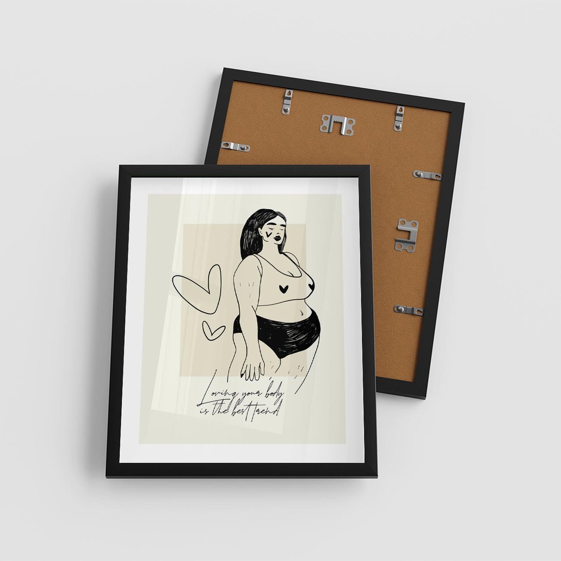 Ten rysunek wyróżnia piękno kobiecej sylwetki w delikatnej bieliźnie. W połączeniu z nowoczesnym stylem i wyrafinowaną typografią, oddaje wyjątkową estetykę i siłę kobiet.