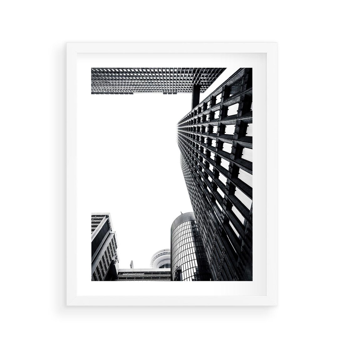 Plakat w ramie 40x50 - Monochromatyczna Sceneria Wieżowców - architektura, wieżowce - rama biała