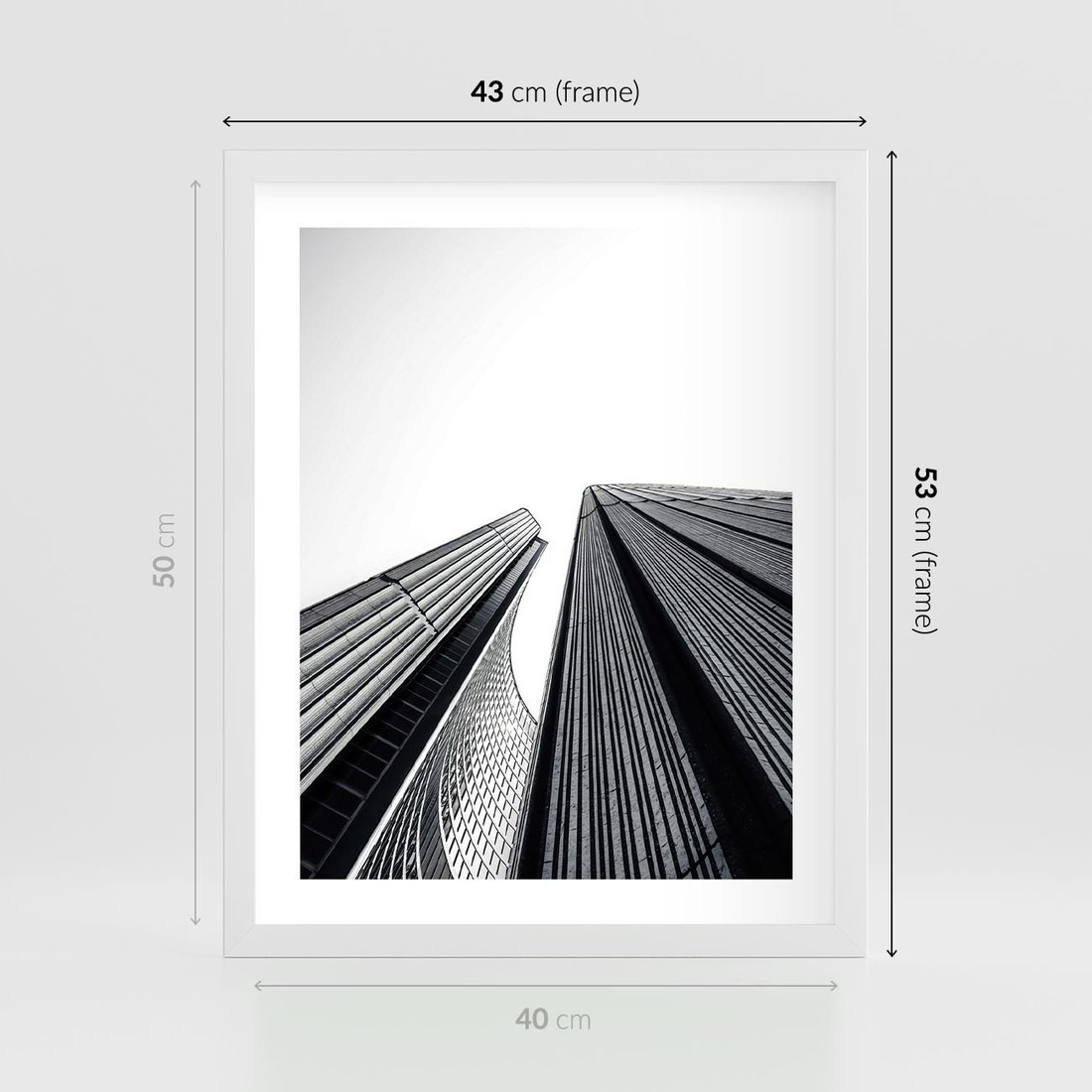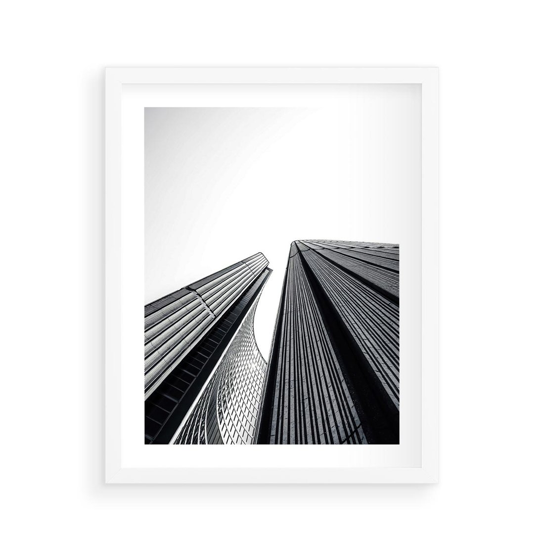 Plakat w ramie 40x50 - Monochromatyczna Wizja - architektura, wysoki wieżowiec - rama biała