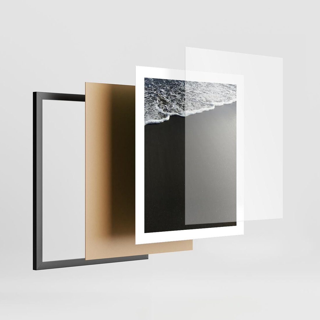 Plakat w ramie 40x50 - Morskie Fale na Plaży - plaża, morskie fale omywają piasek - rama czarna