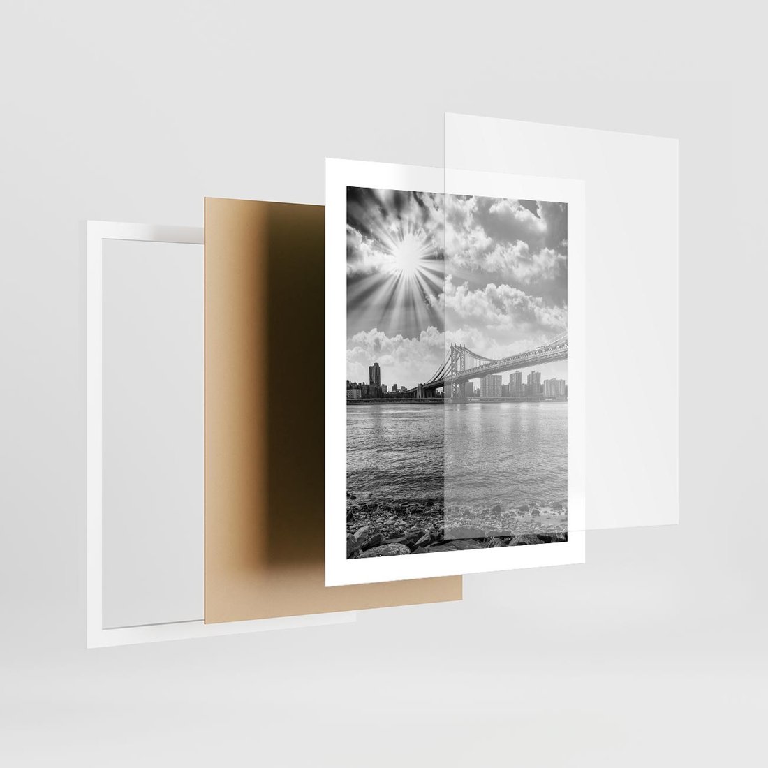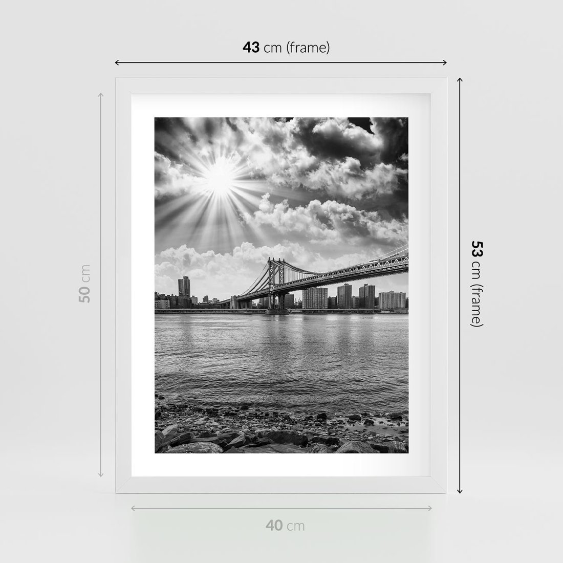Plakat w ramie 40x50 - Most w Mieście - most, miasto - rama biała