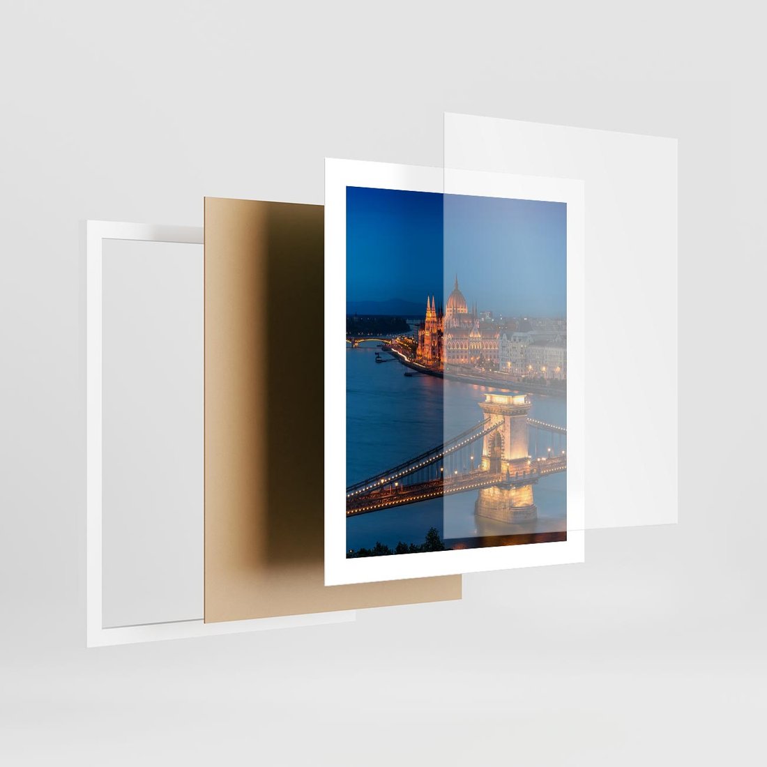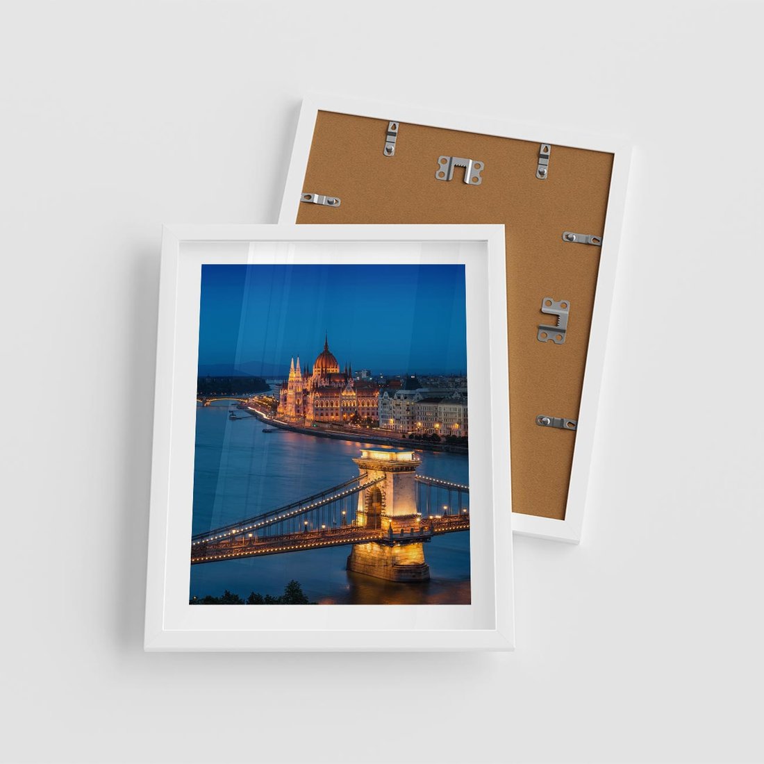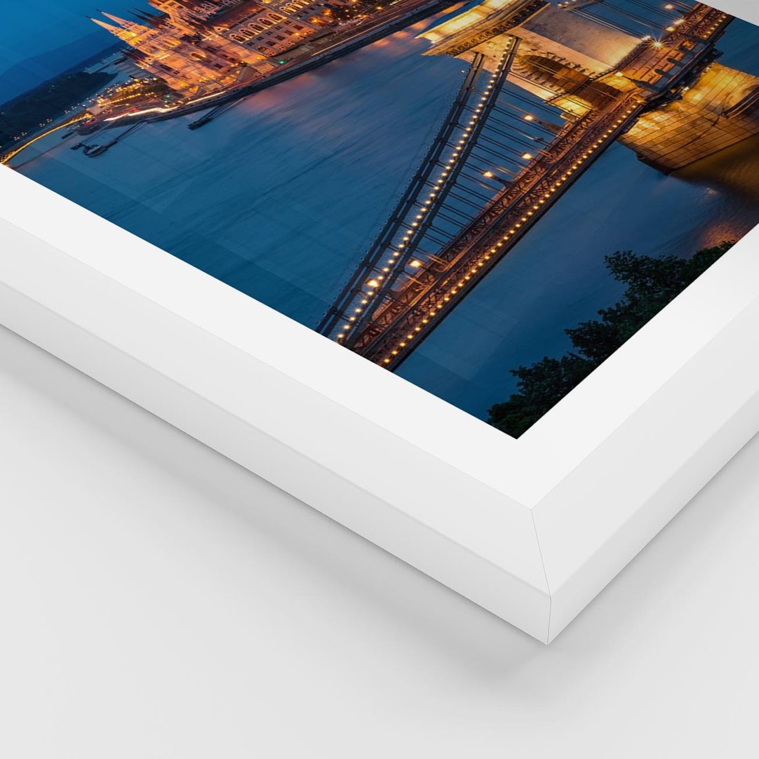 Plakat w ramie 40x50 - Mostowe miasto nocą - miasto, most - rama biała