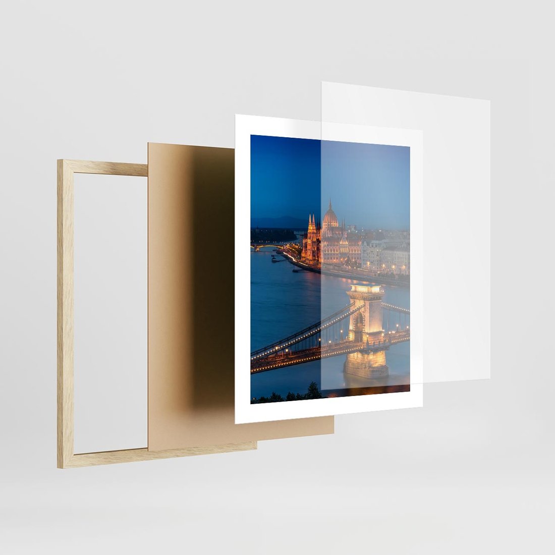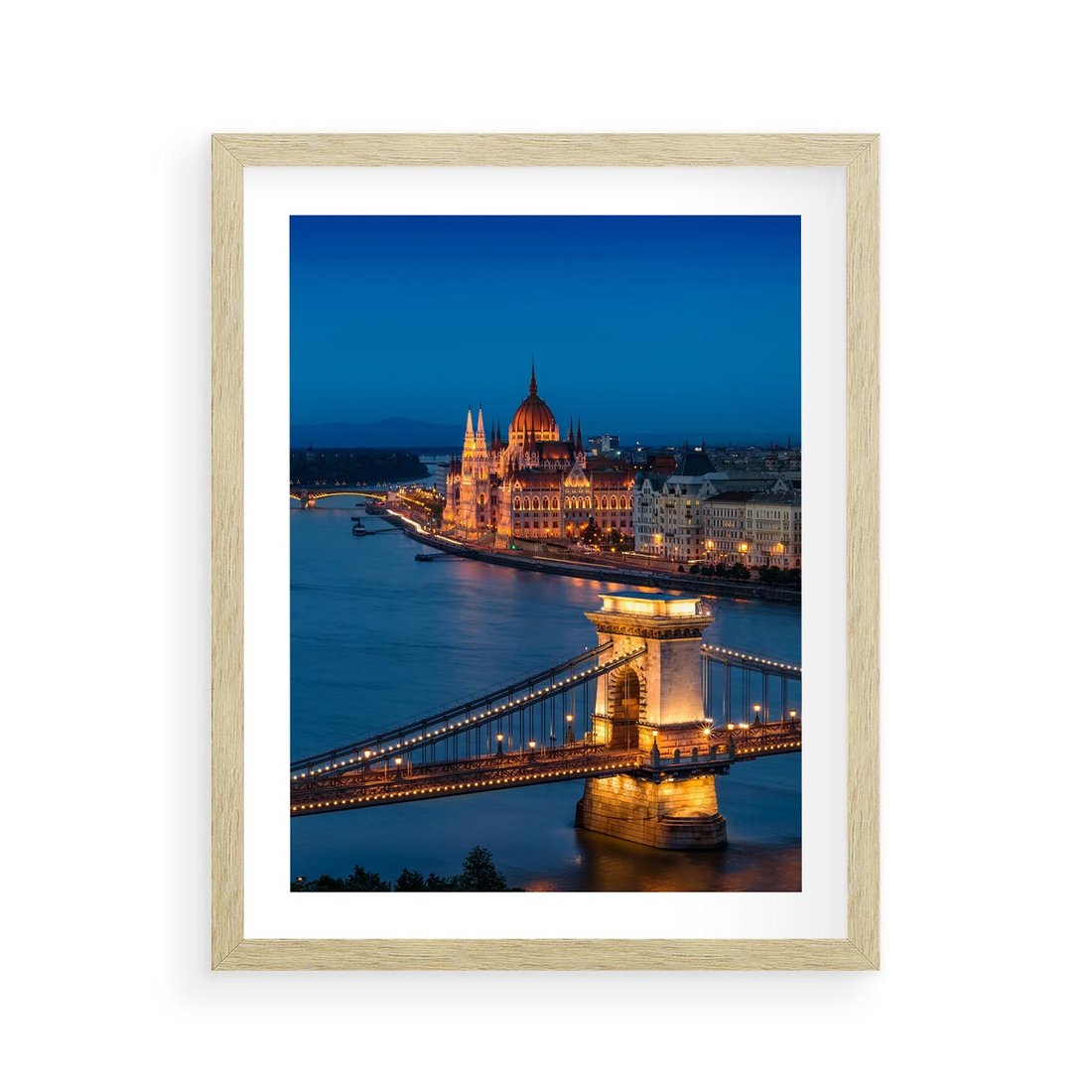 Plakat w ramie 40x50 - Mostowe miasto nocą - miasto, most - rama drewno