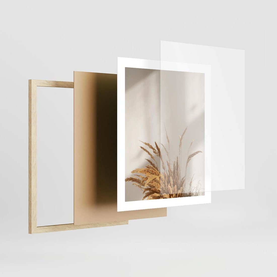 Plakat w ramie 40x50 - mpresyjne układy traw - boho, trawy - rama drewno
