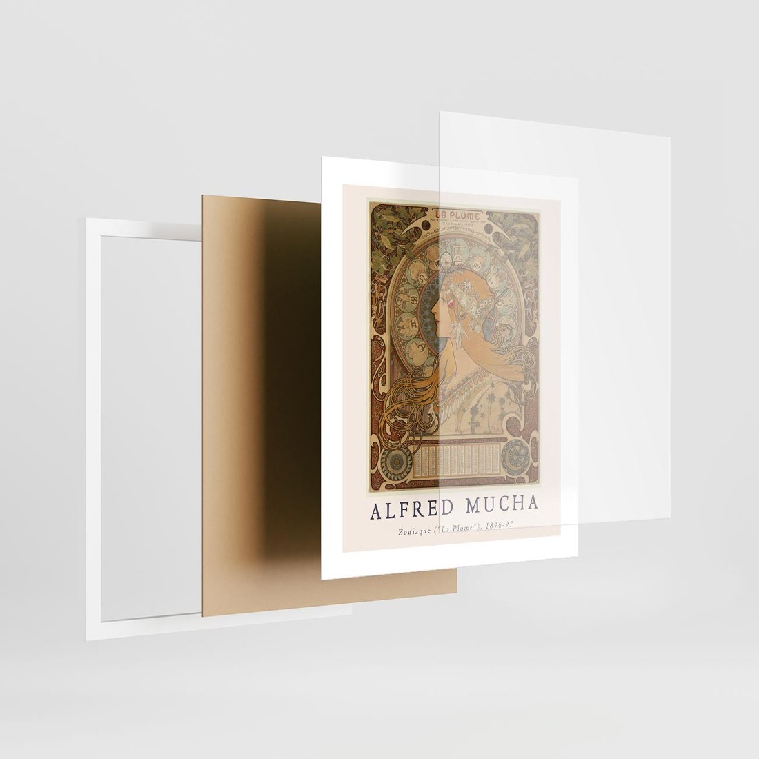Reprodukcja dzieła Alfonsa Muchy wzbogacona o starannie dobraną typografię tworzy artystyczny plakat.