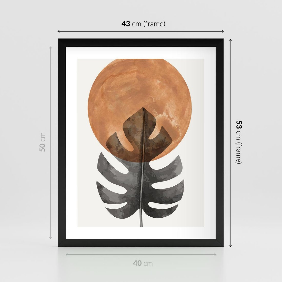 Nasza grafika to połączenie natury i nowoczesnego designu. Ten czarno-biały szkic przedstawia elegancki liść monstery w towarzystwie miedzianego koła, co tworzy minimalistyczną i stylową kompozycję. To idealna dekoracja, aby wprowadzić do swojego wnętrza harmonię między naturą a sztuką.