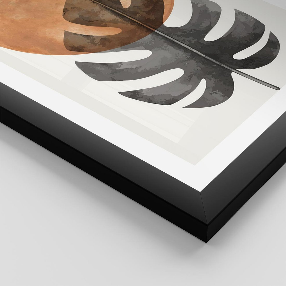 Plakat w ramie 40x50 - Natura a Sztuka - liść monstery, czarna grafika - rama czarna