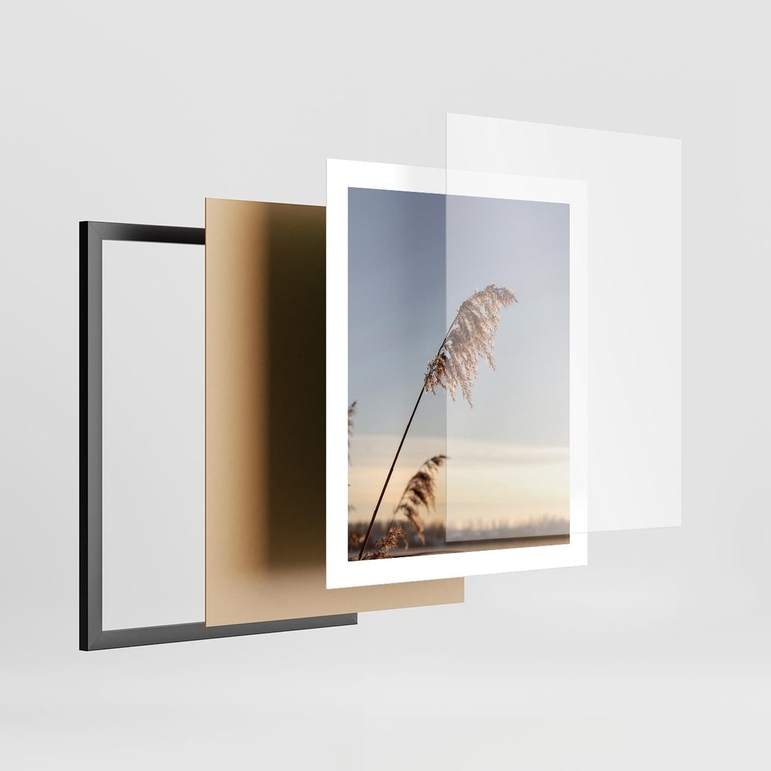 Plakat w ramie 40x50 - Naturalna Delikatność - trawy, boho - rama czarna