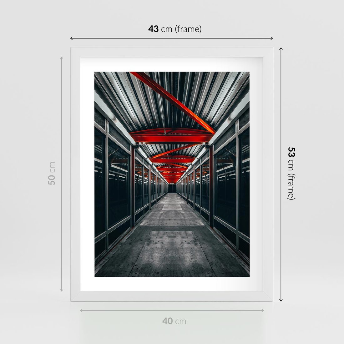 Plakat w ramie 40x50 - Nieskończoność Przestrzeni - korytarz, perspektywa - rama biała