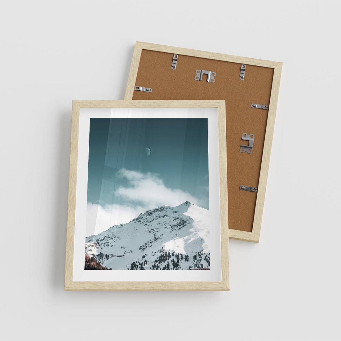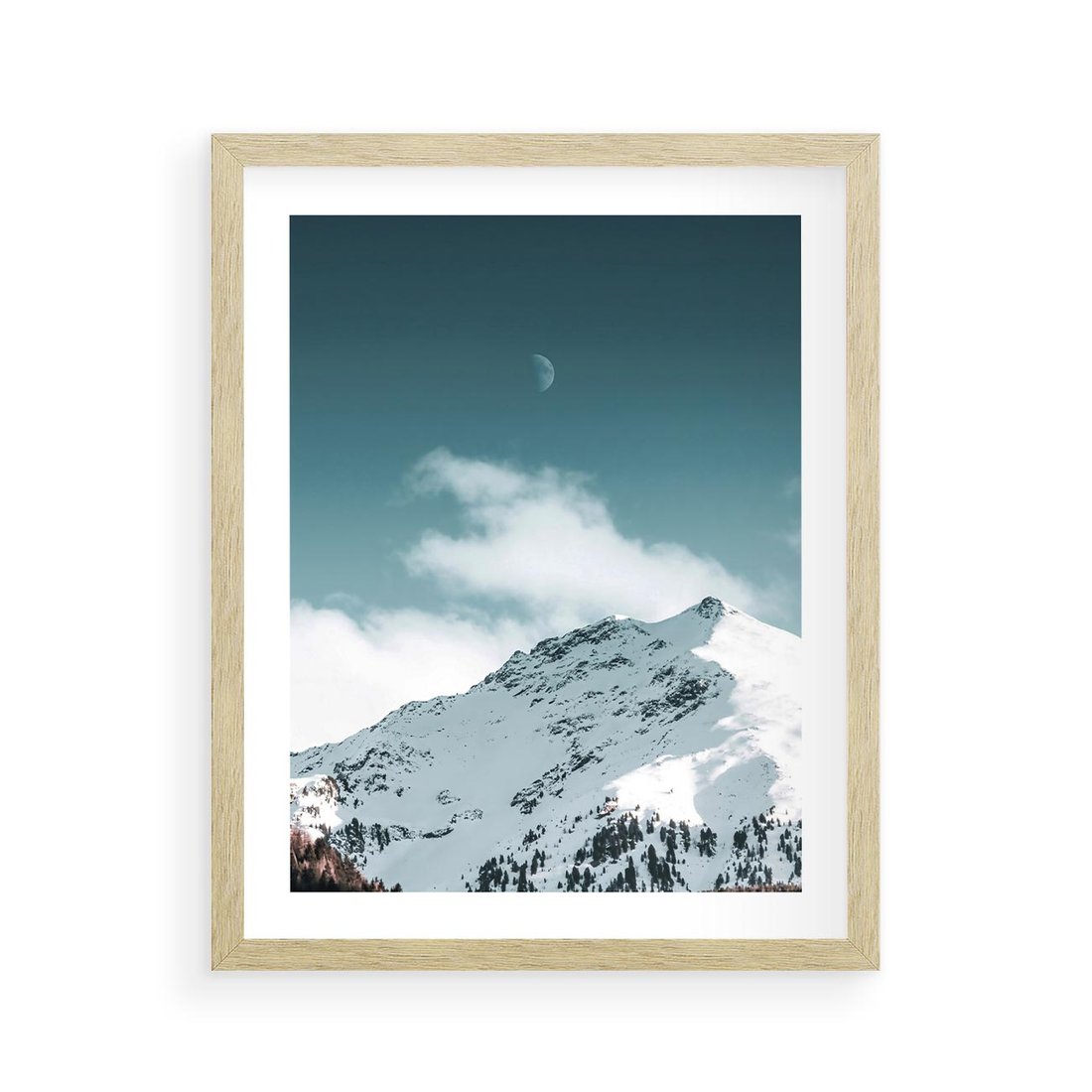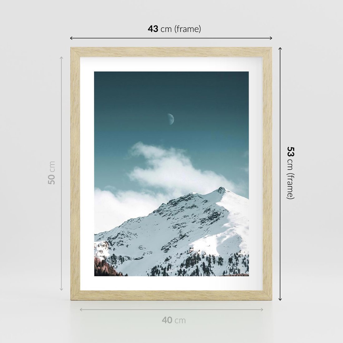 Plakat w ramie 40x50 - Nocna Magia w Górach - fotografia, śnieg - rama drewno