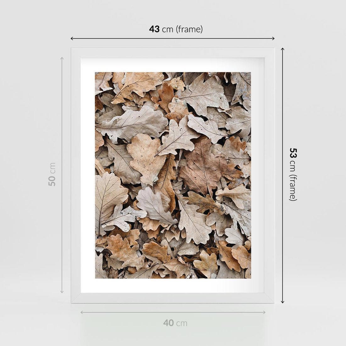Plakat w ramie 40x50 - Nostalgiczny Pejzaż - suche liście, jesień - rama biała