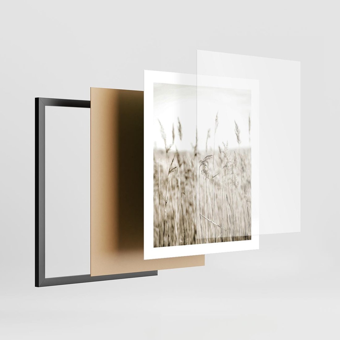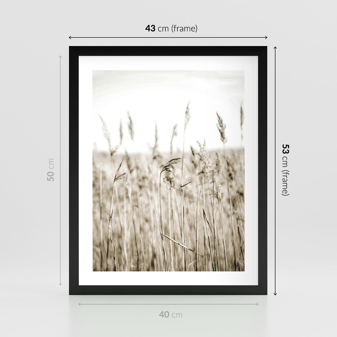 Plakat w ramie 40x50 - Nostalgiczny Pejzaż - suche trawy, pole - rama czarna