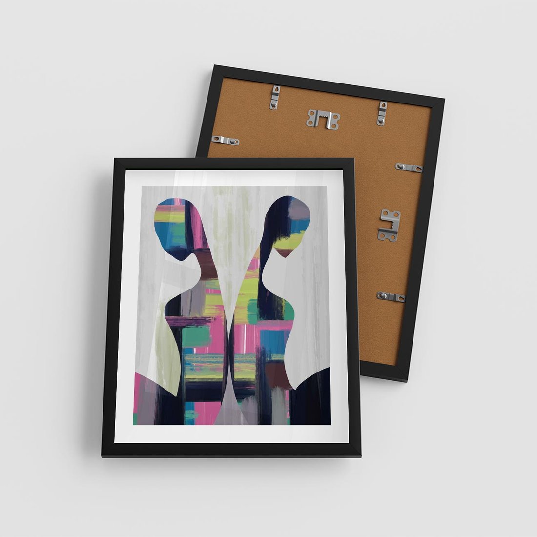 Nasz abstrakcyjny plakat to połączenie nowoczesnej sztuki z sylwetkami ludzi w dynamicznym tańcu kolorów. Intensywne barwy nadają głębi kompozycji, oddając emocje i energię. To idealny dodatek dla miłośników sztuki poszukujących unikalnej dekoracji, która wzbudzi zainteresowanie i ożywi przestrzeń.