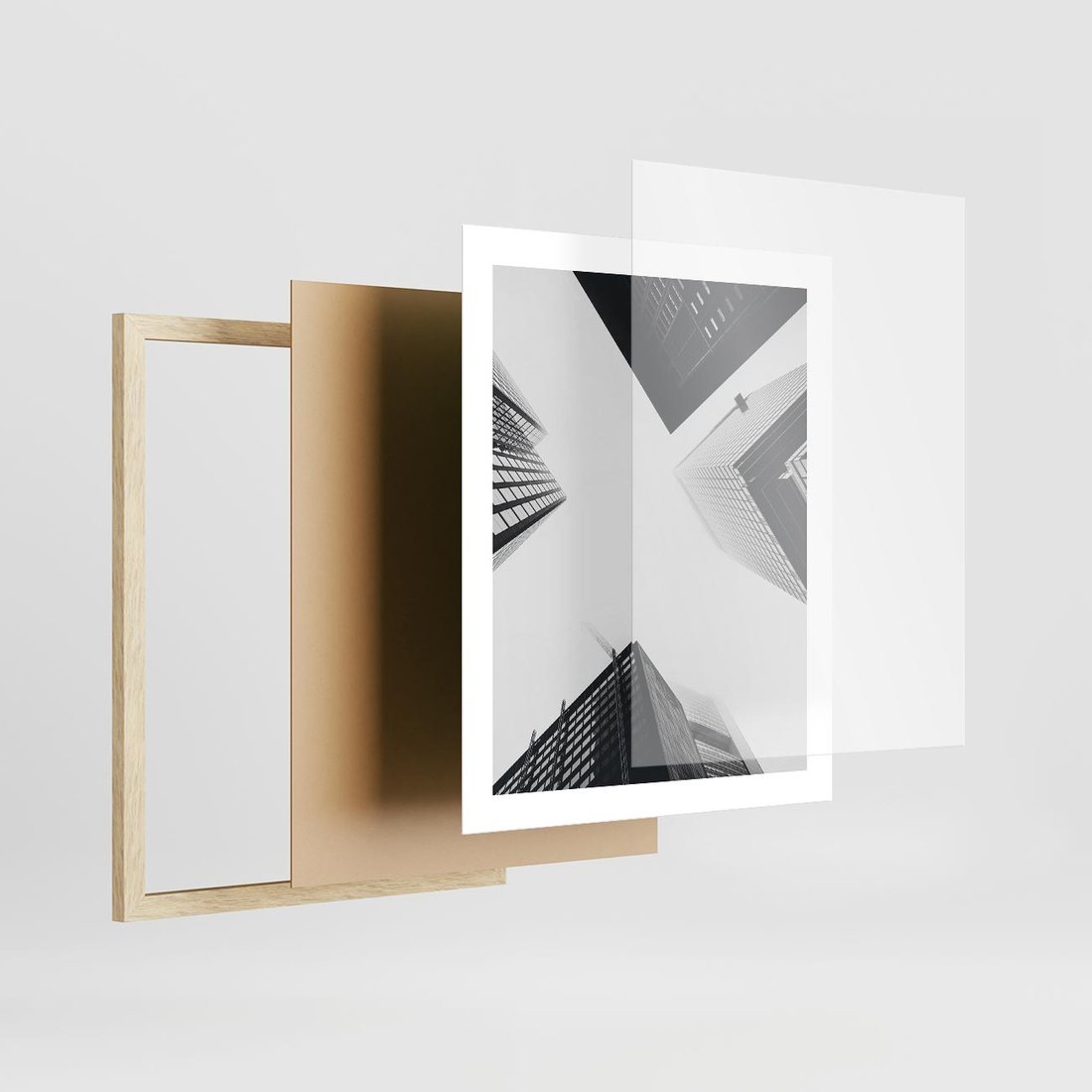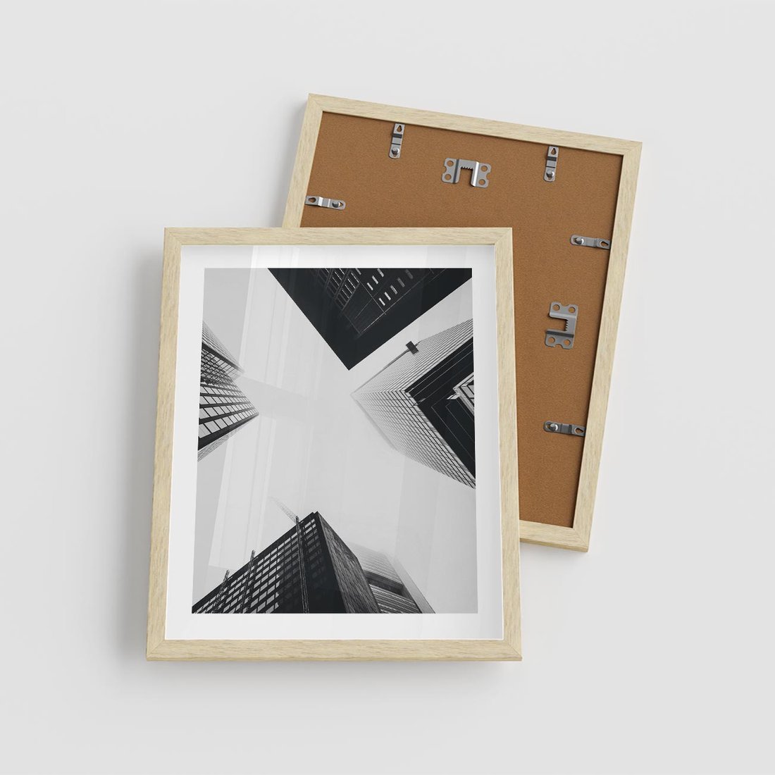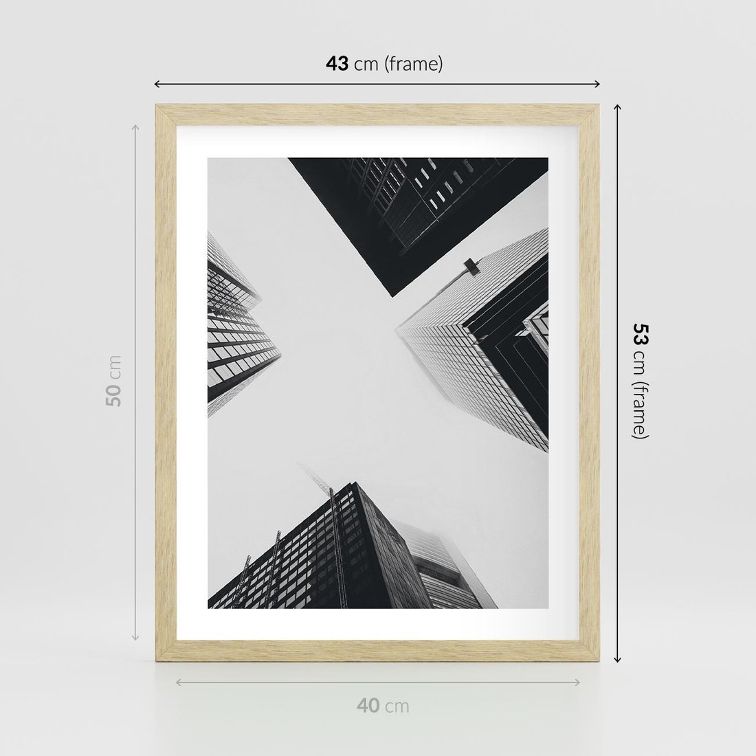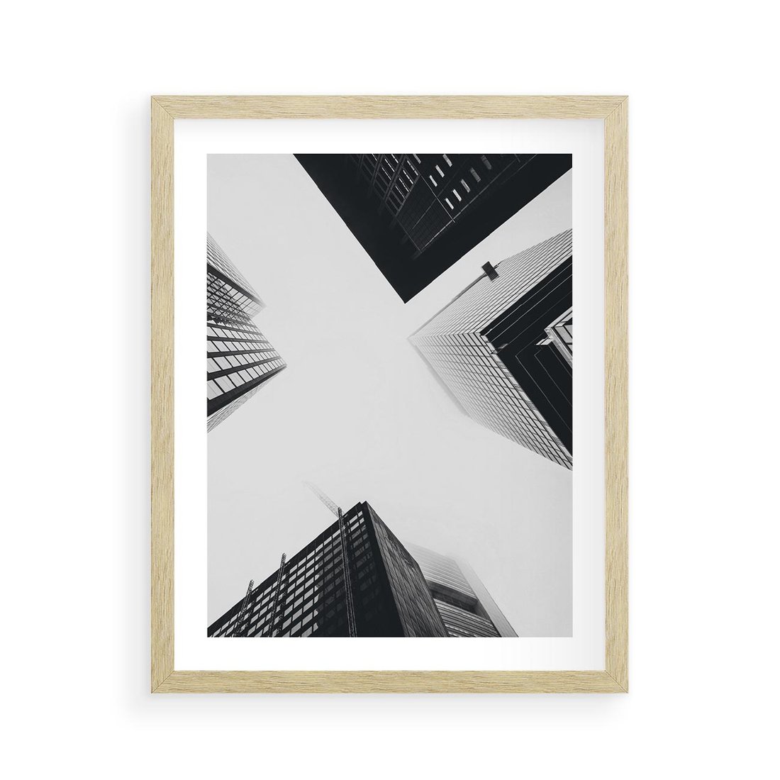 Plakat w ramie 40x50 - Nowoczesna Dynamika - perspektywa, wieżowce - rama drewno