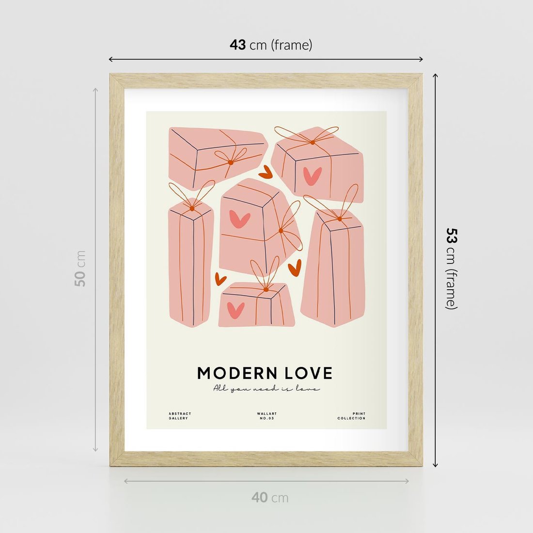 Plakat w ramie 40x50 - Nowoczesna Miłość - nowoczesna grafika, pastelowe kolory - rama drewno