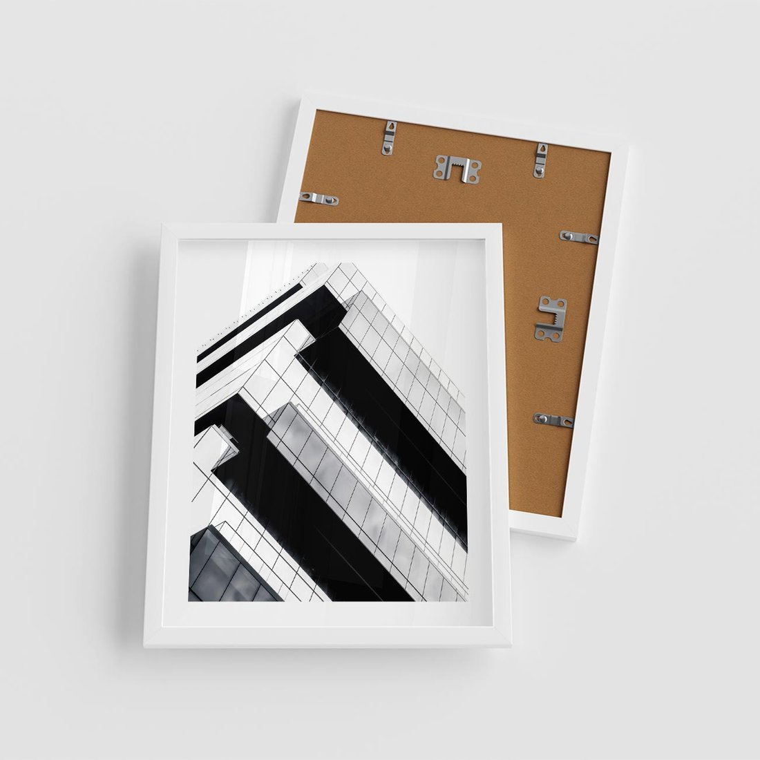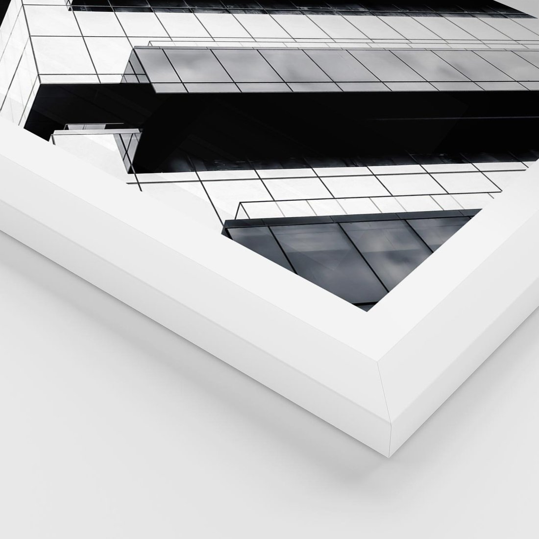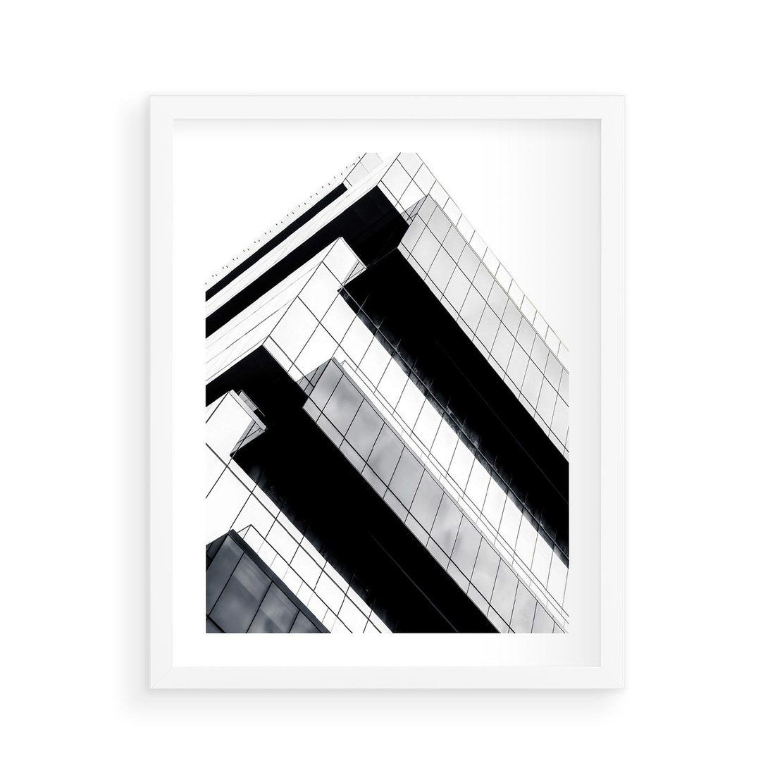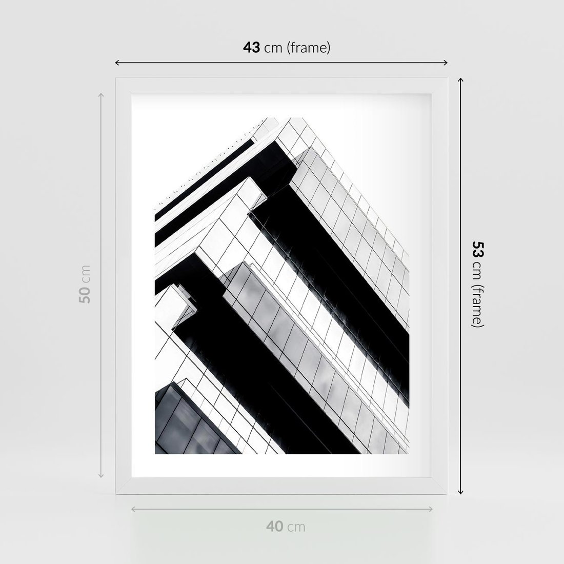 Plakat w ramie 40x50 - Nowoczesna Surowość: Wieżowiec na Czarno-Białej Grafice - architektura, wieżowiec - rama biała