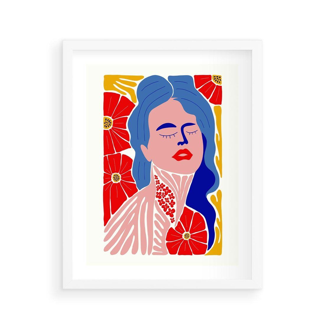 Plakat w ramie 40x50 - Nowoczesna Twarz - nowoczesna grafika, kolorowa twarz kobiety - rama biała