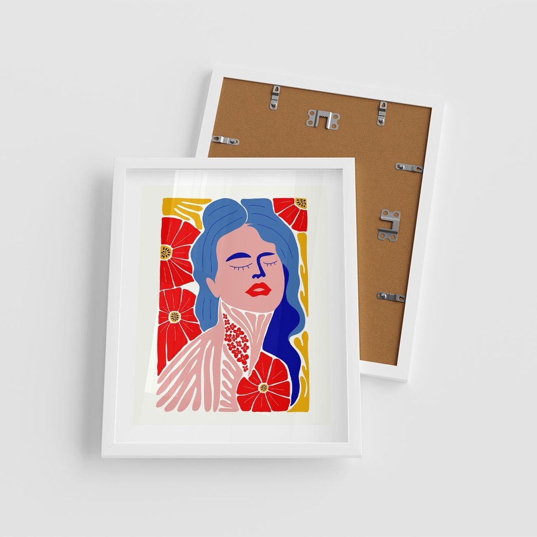 Wyjątkowa grafika przedstawia abstrakcyjny portret kobiety, w którym wyraziste kolory tworzą dynamiczną kompozycję. Ta nowoczesna sztuka dodaje głębi i charakteru Twojemu wnętrzu.