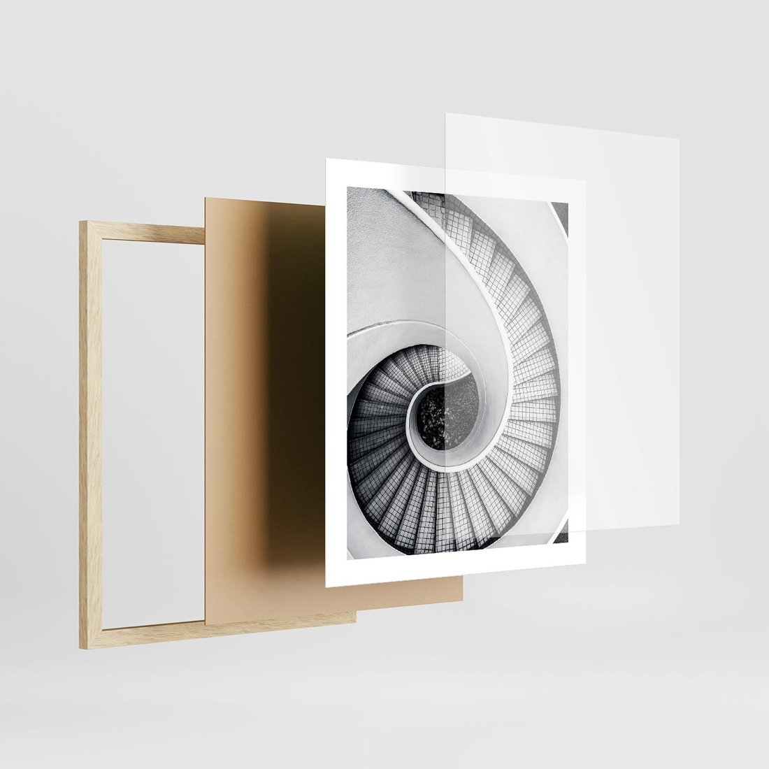 Plakat w ramie 40x50 - Nowoczesne Schody: Kręcone Piękno - nowoczesna architektura, kręcone schody - rama drewno