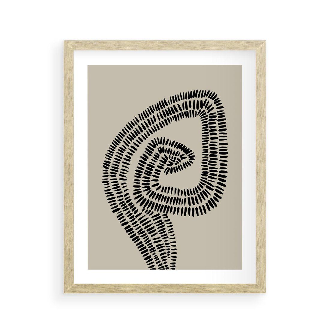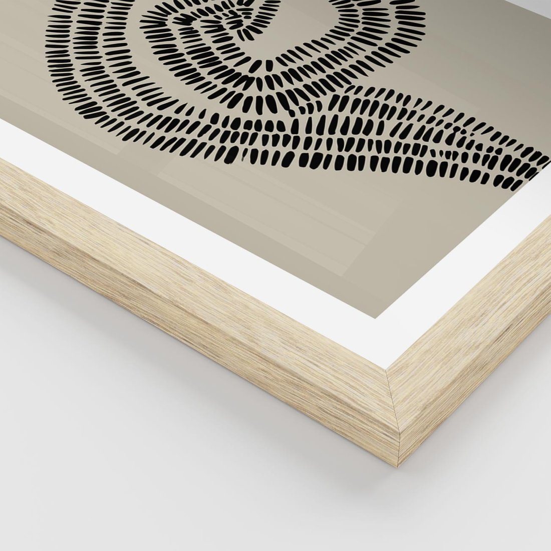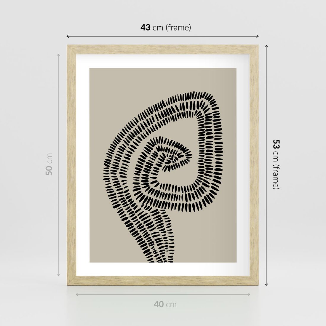 Plakat w ramie 40x50 - Nowoczesne Spektrum Wyobraźni - boho plakat, czarne kropki kreski - rama drewno