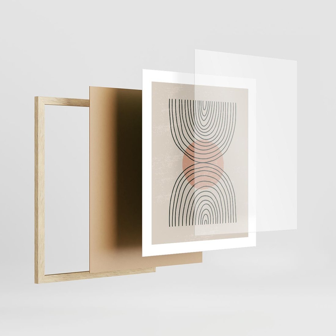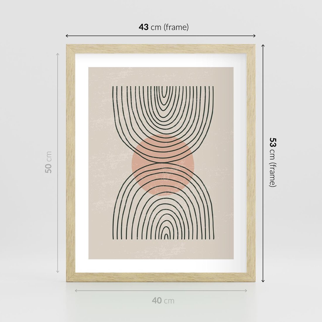 Nasza abstrakcyjna sztuka to połączenie boho kształtów z minimalizmem, idealne dla nowoczesnych wnętrz. To wyjątkowe dzieło wprowadza do Twojej przestrzeni oryginalność i nowoczesność, tworząc jednocześnie spokojną i wyrafinowaną kompozycję.
