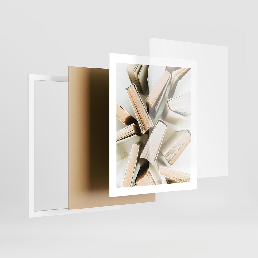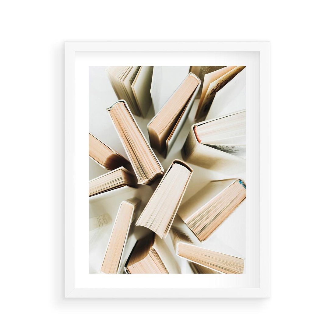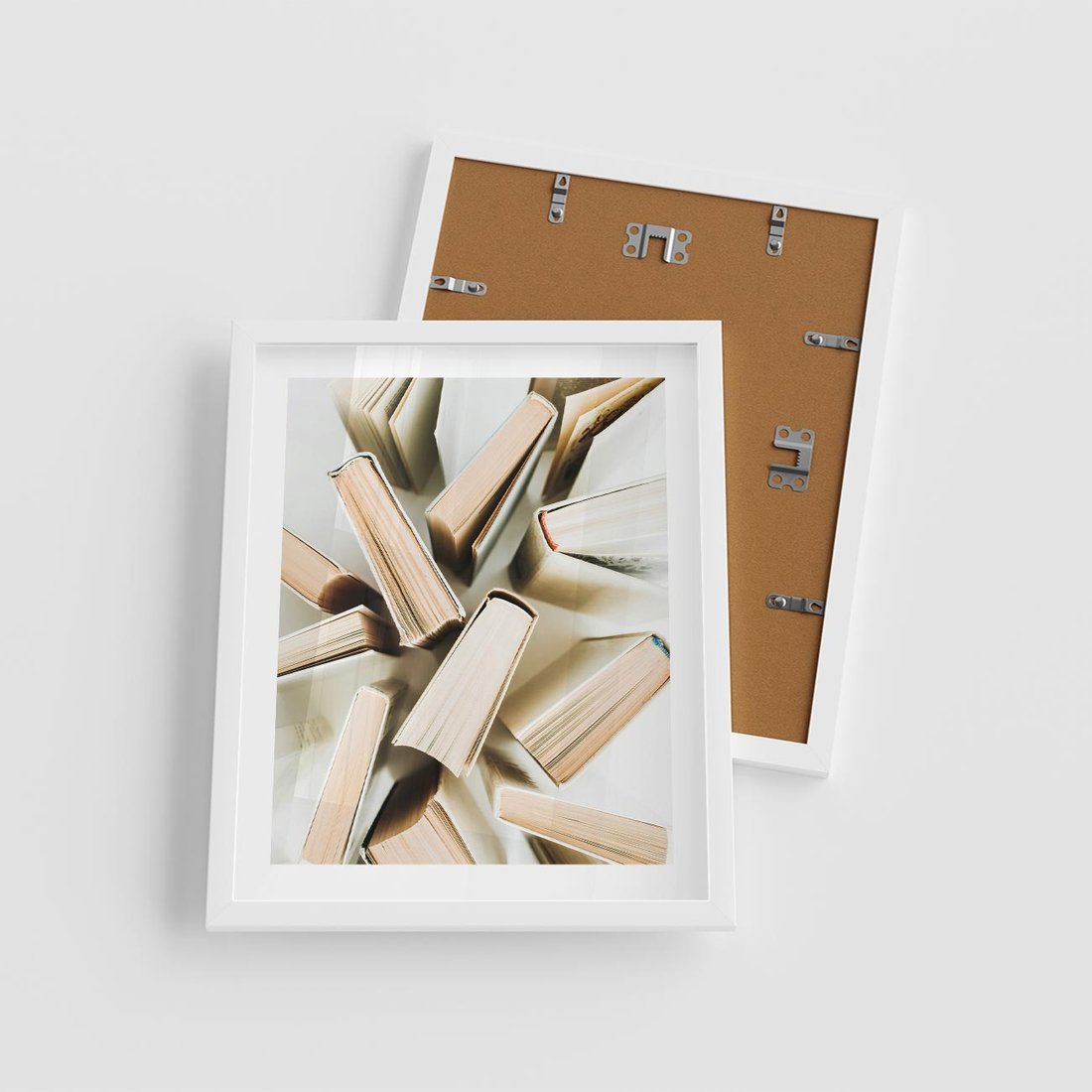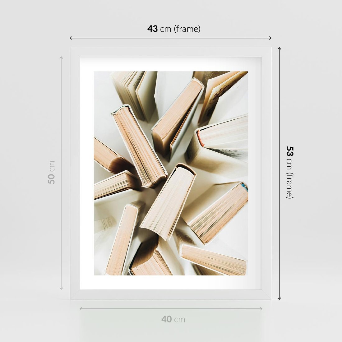 Plakat w ramie 40x50 - Odcienie Wiedzy - książki, ujęcie z góry - rama biała