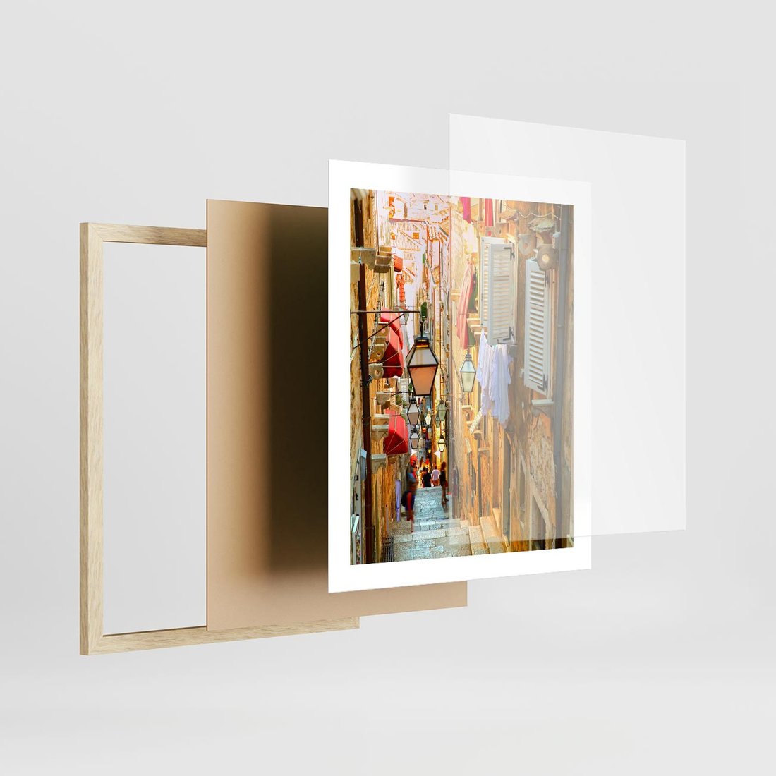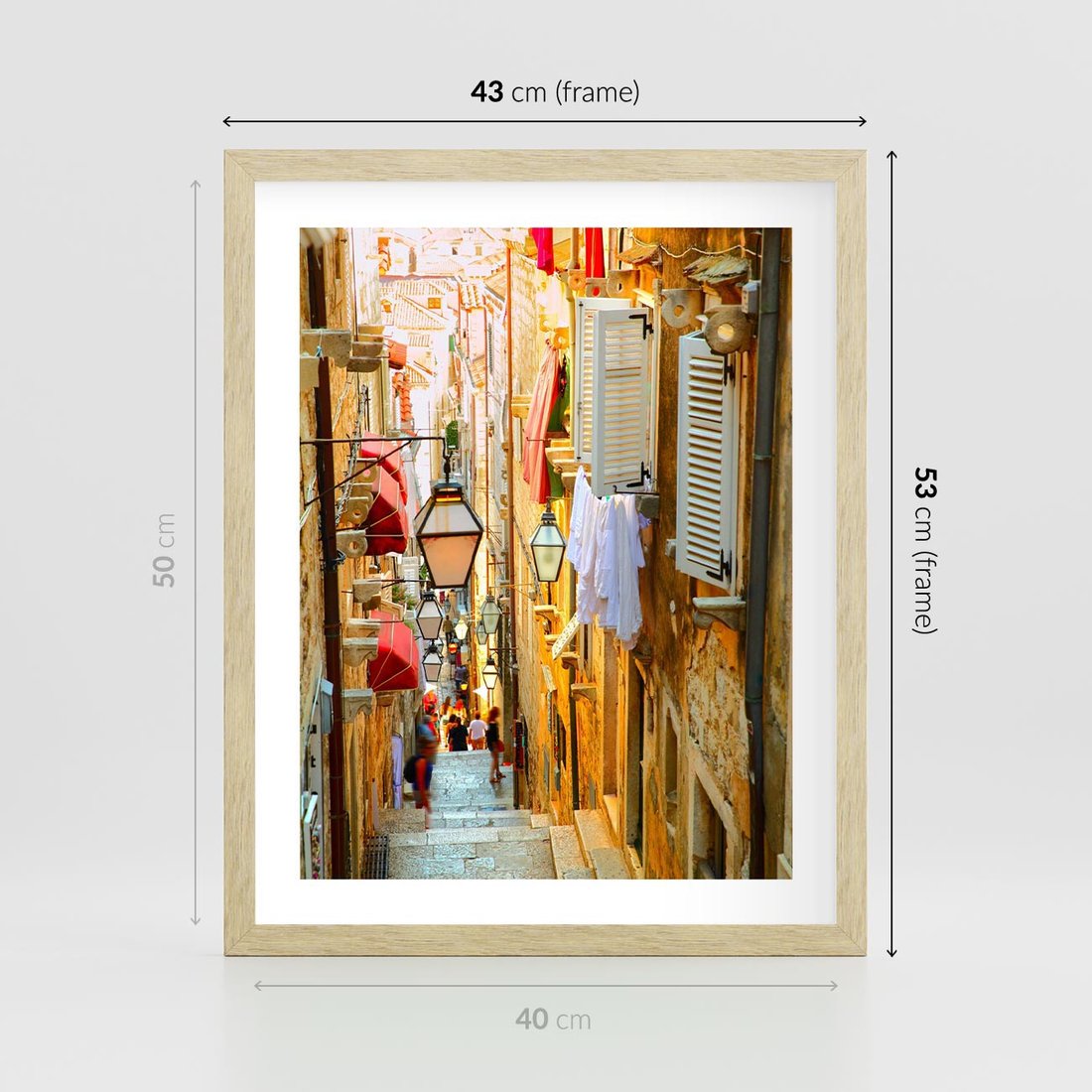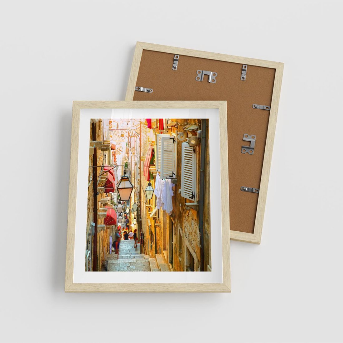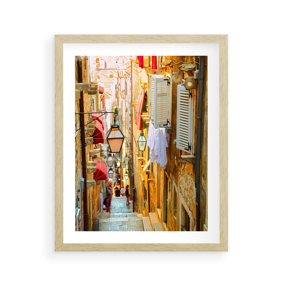 Plakat w ramie 40x50 - Odkryj tajemnice miasta - uliczka, perspektywa - rama drewno
