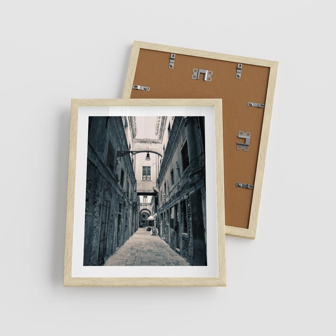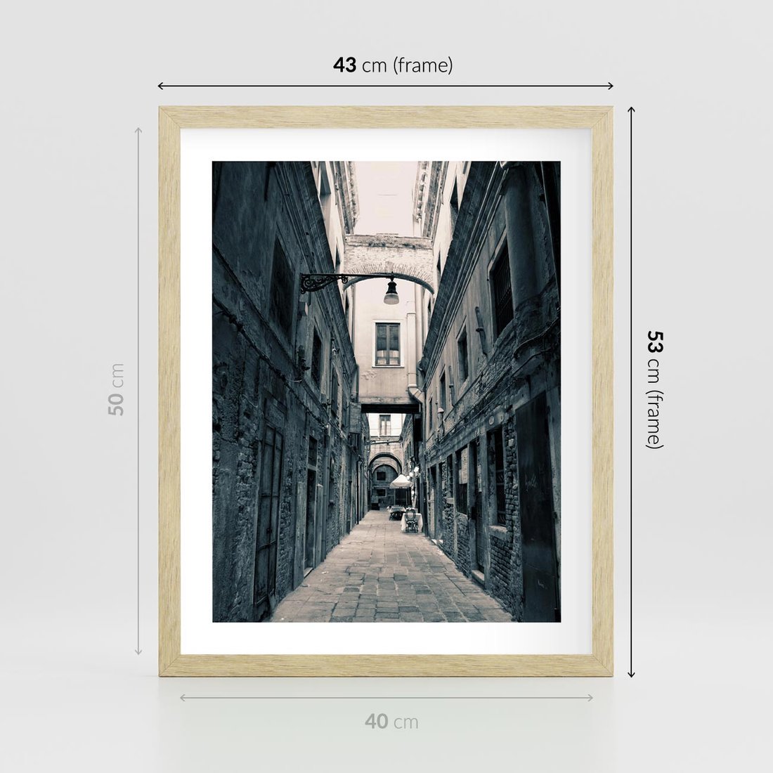 Plakat w ramie 40x50 - Odkryj tajemnice miasta - uliczka, perspektywa - rama drewno