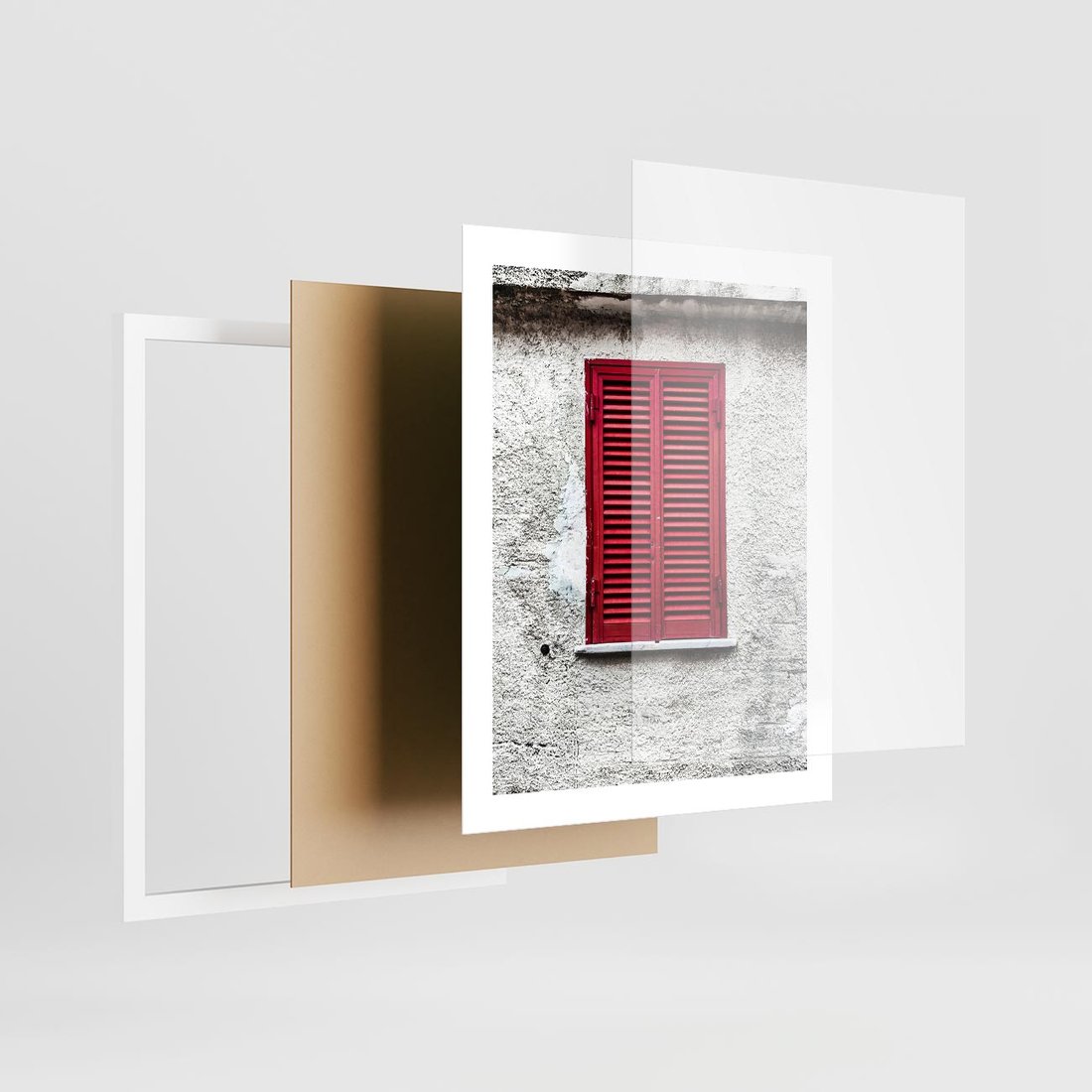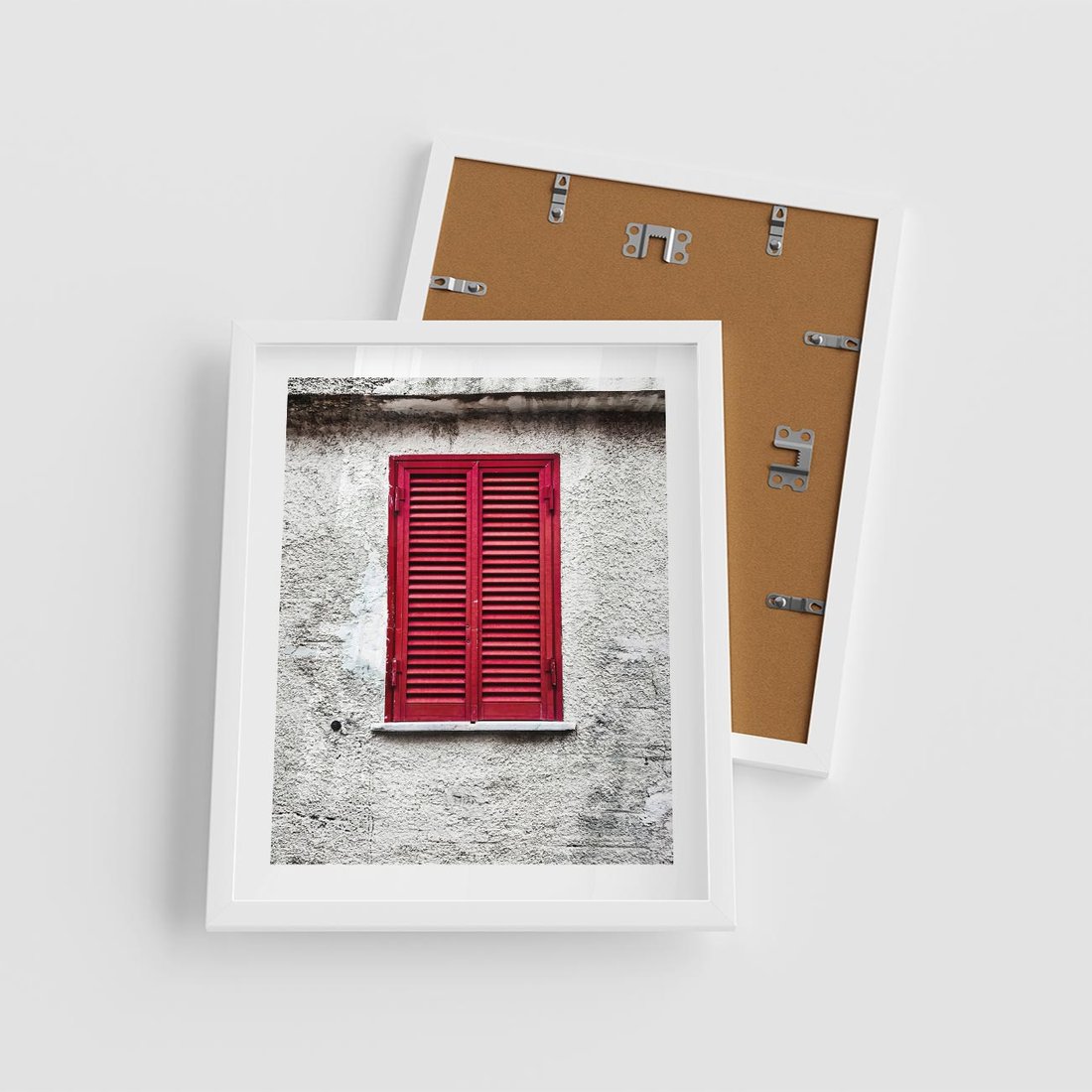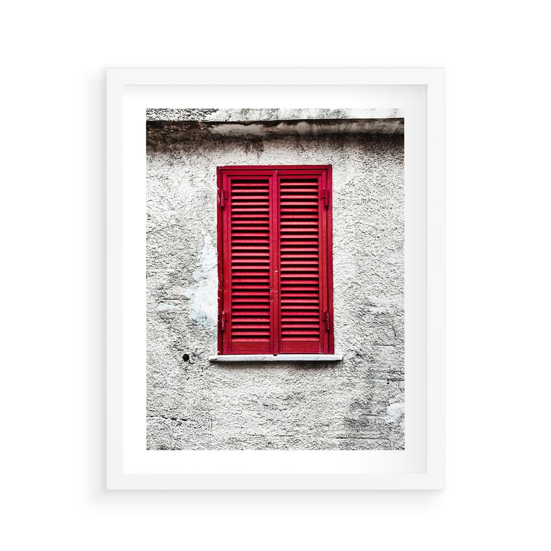 Plakat w ramie 40x50 - Okno z Czerwonymi Okiennicami - stare okno, kamienica - rama biała