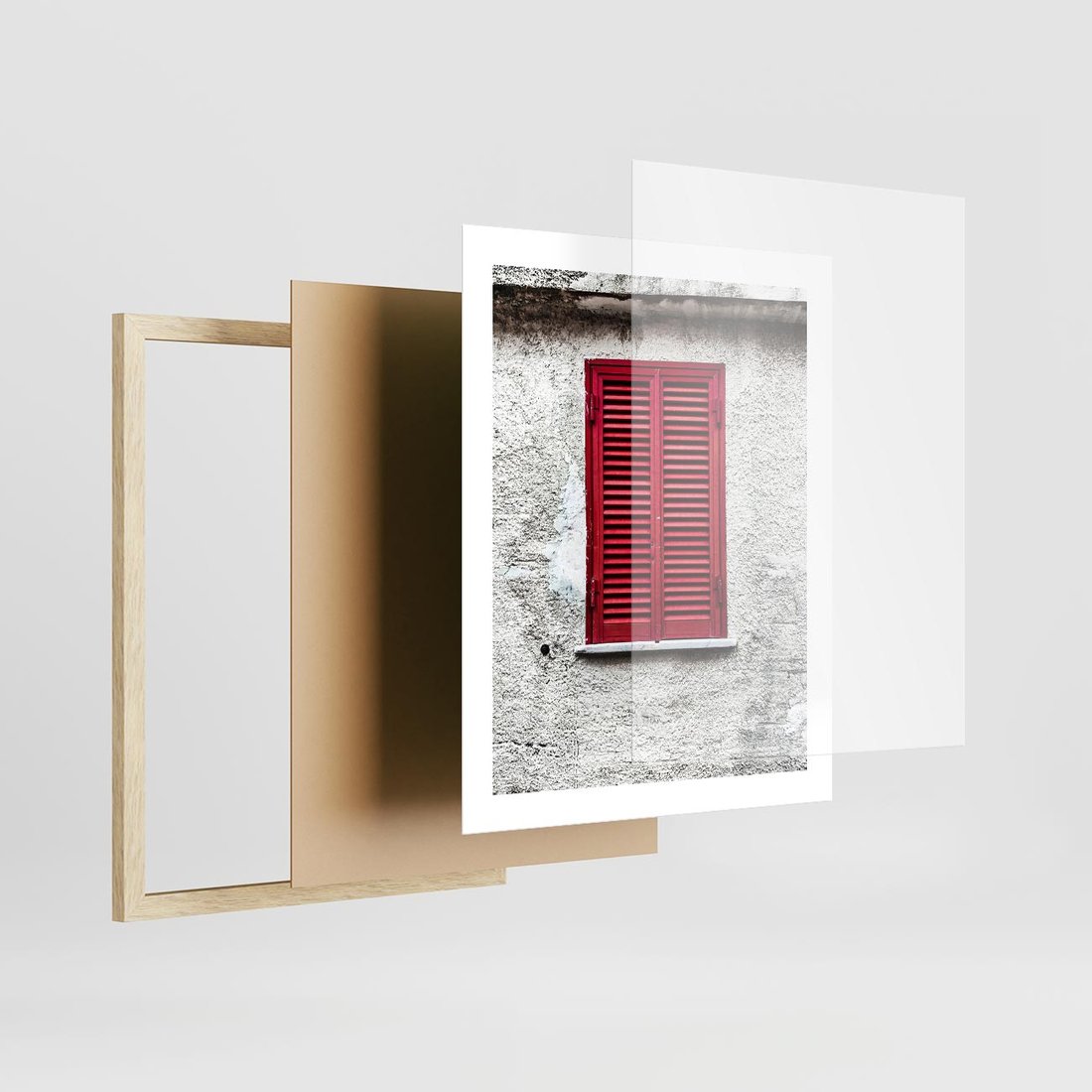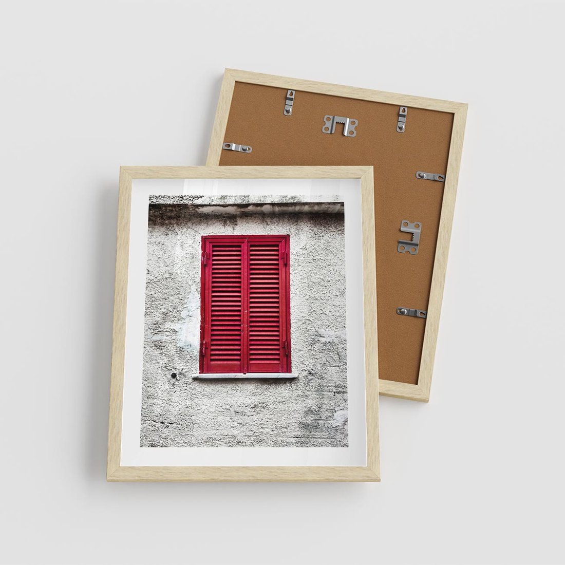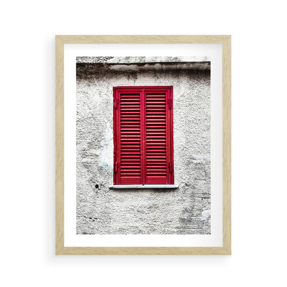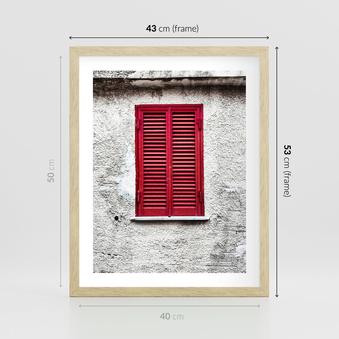 - Plakat w ramie 40x50 - Okno z Czerwonymi Okiennicami