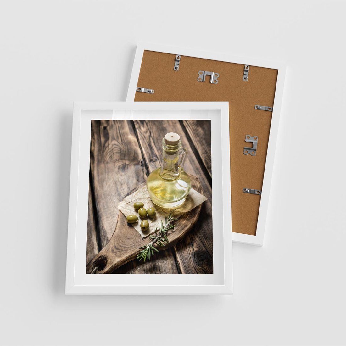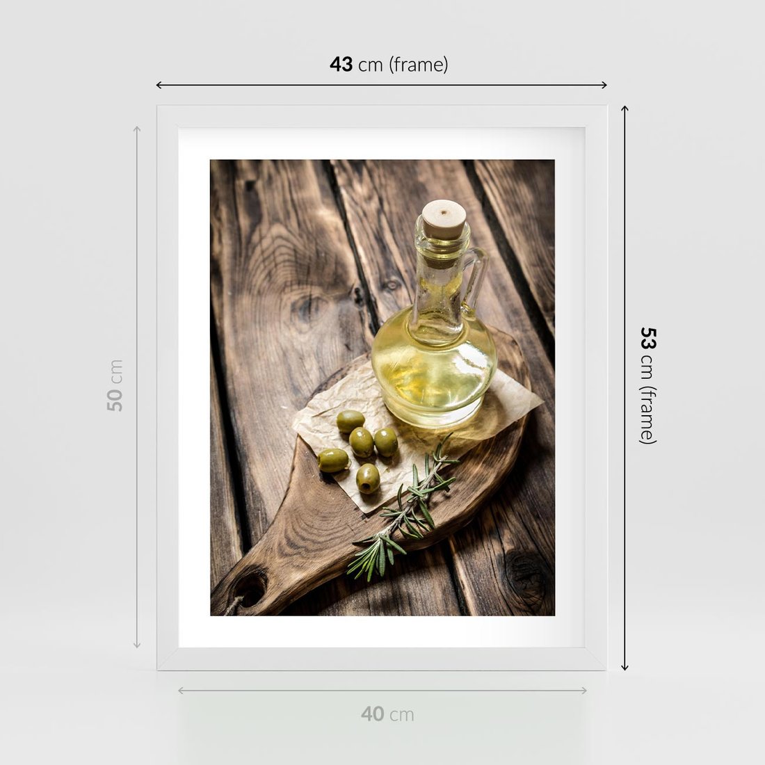 Plakat w ramie 40x50 - Oliwki w restauracji - oliwa, oliwki - rama biała