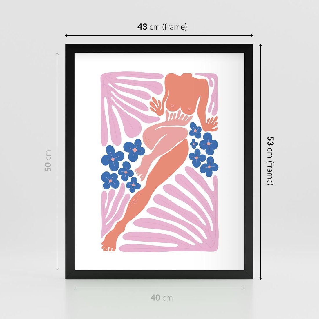 Plakat w ramie 40x50 - Opowieść Ognistych Rytów - nowoczesny kobiecy akt, graficzne kształty - rama czarna