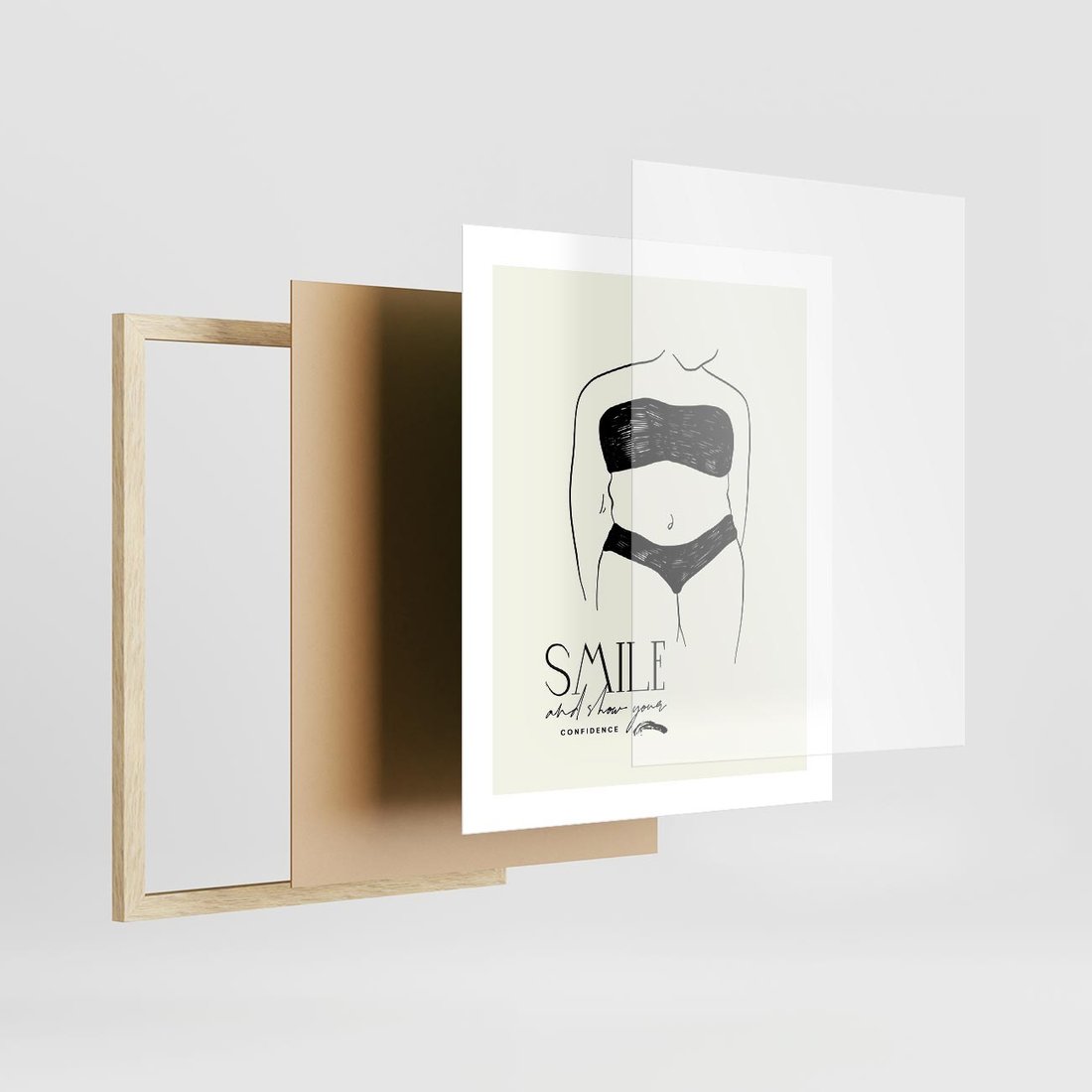 Ten plakat ukazuje silną kobietę w bieliźnie, oddając moc jej kobiecości. Wyraziste rysunki wsparte inspirującą typografią podkreślają wyjątkowość i determinację, przypominając o potędze kobiecego ducha.