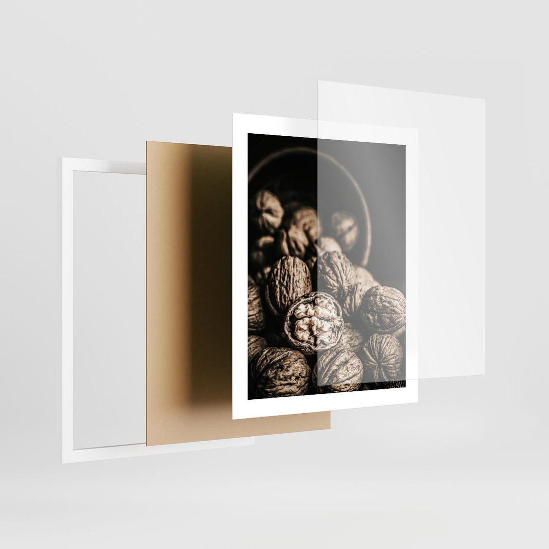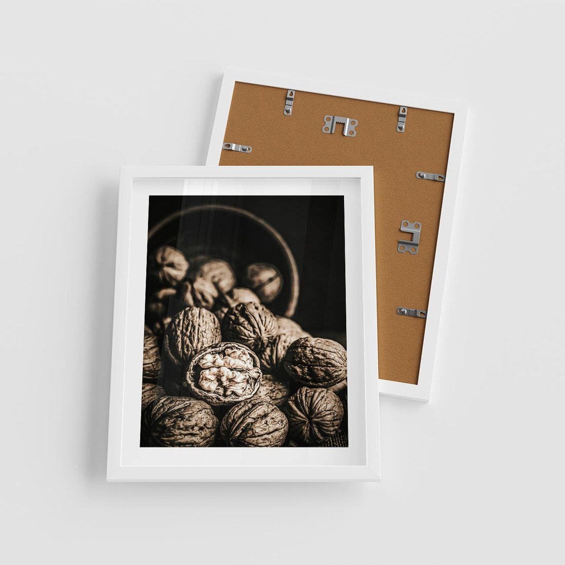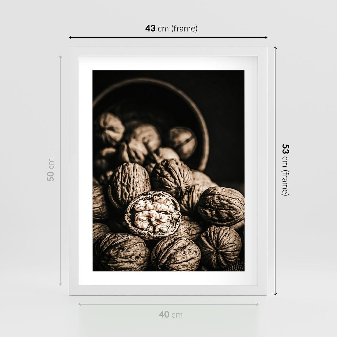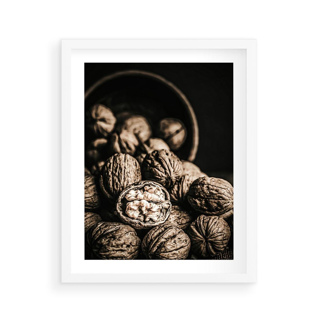Plakat w ramie 40x50 - Orzechy Włoskie w Sepii - orzechy włoskie, fotografia retro - rama biała