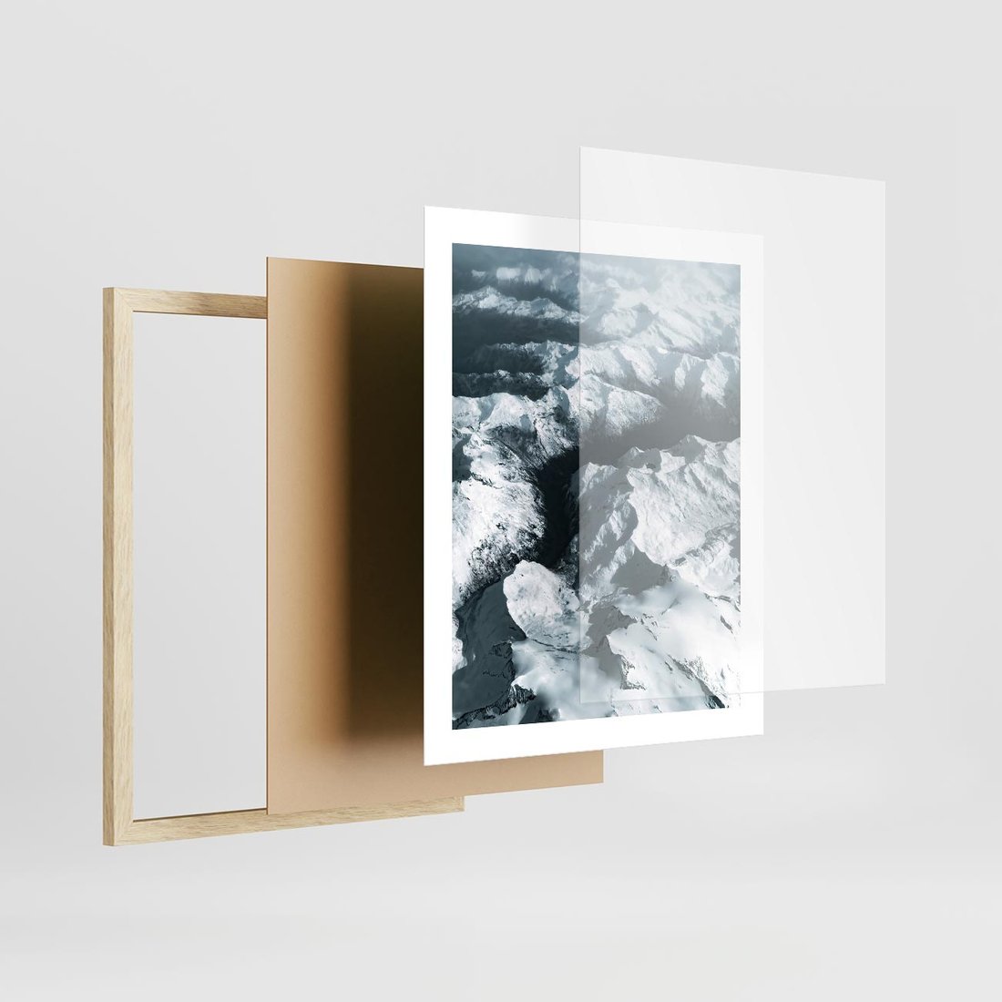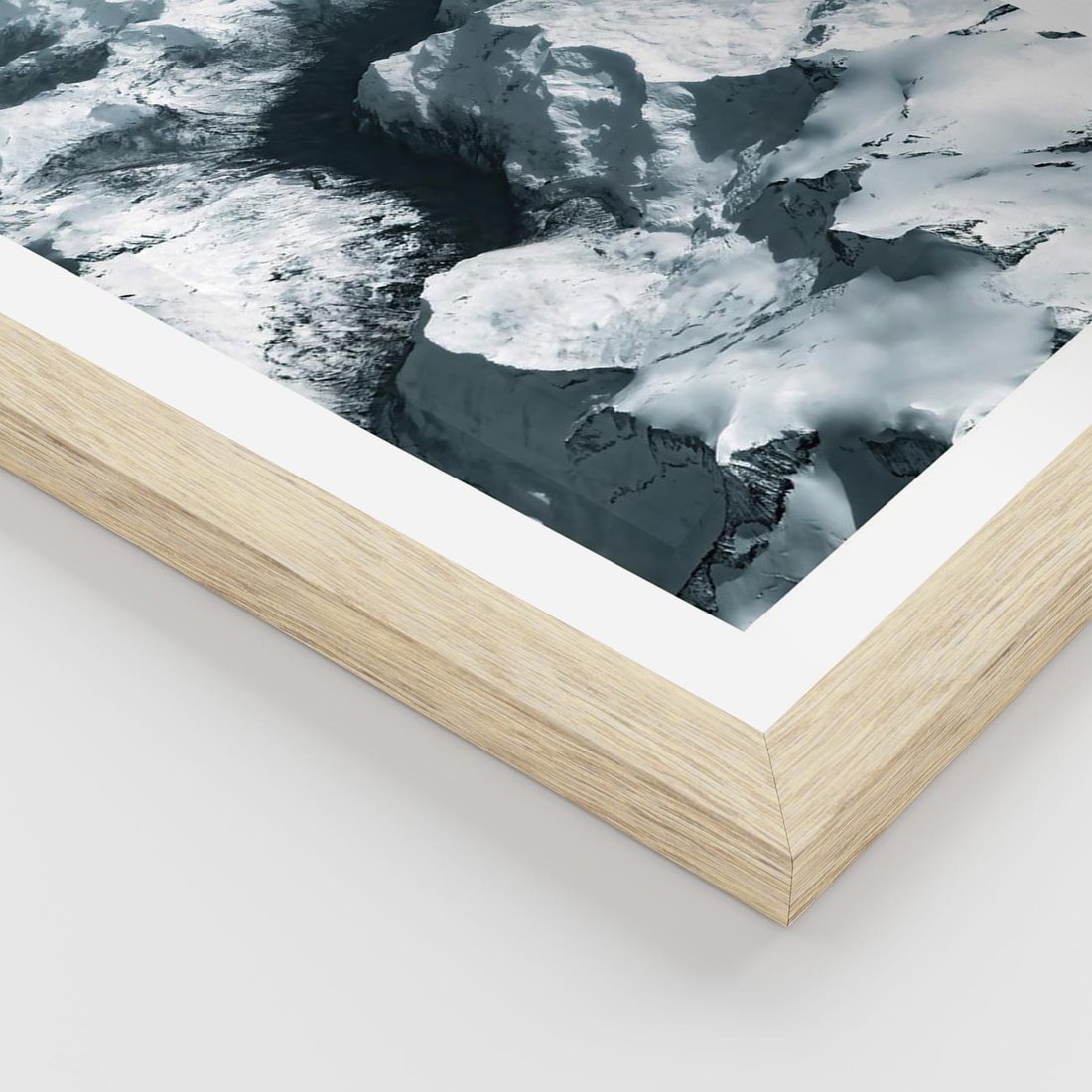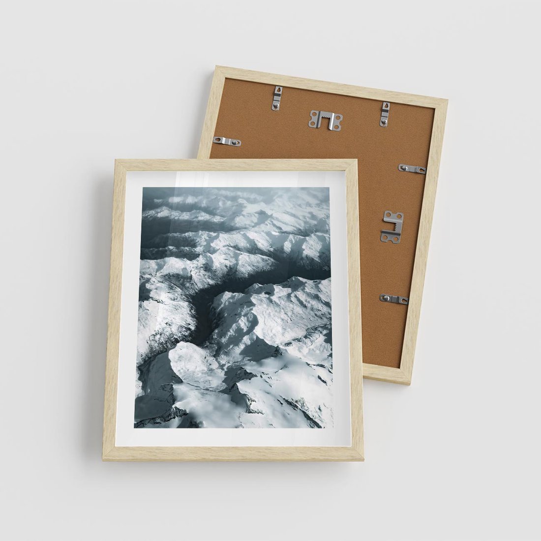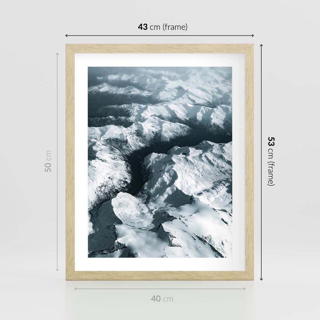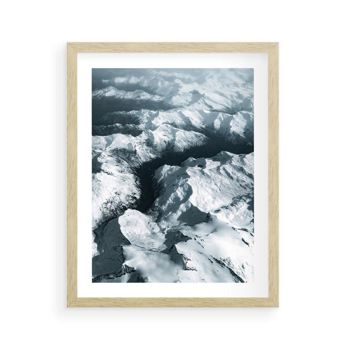 Plakat w ramie 40x50 - Ośnieżone Szczyty z Wysoka - ośnieżone szczyt górskie, zdjęcie z lotu ptaka - rama drewno