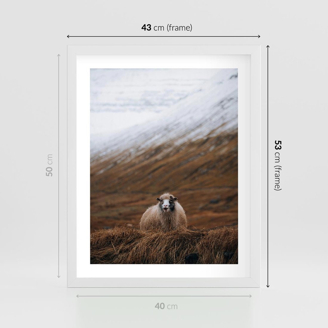 Plakat w ramie 40x50 - Owiecka panorama - góry, owca - rama biała