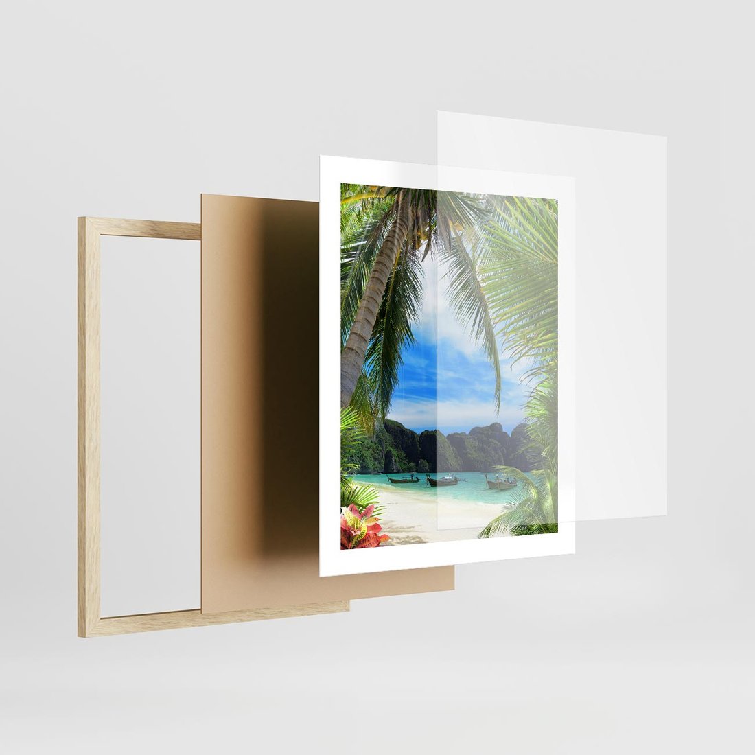 - Plakat w ramie 40x50 - Palmy tańczące na tropikalnej plaży
