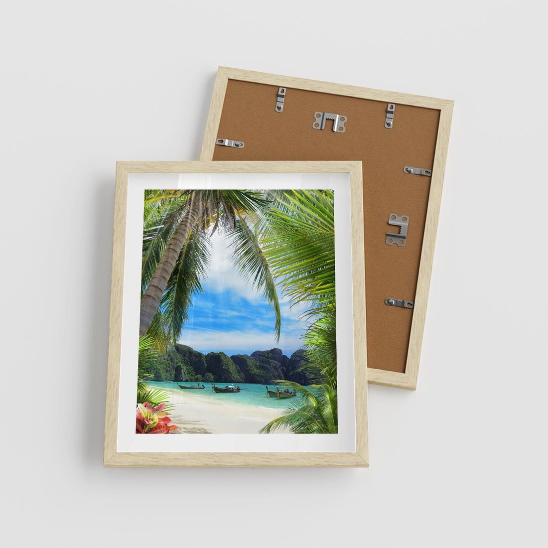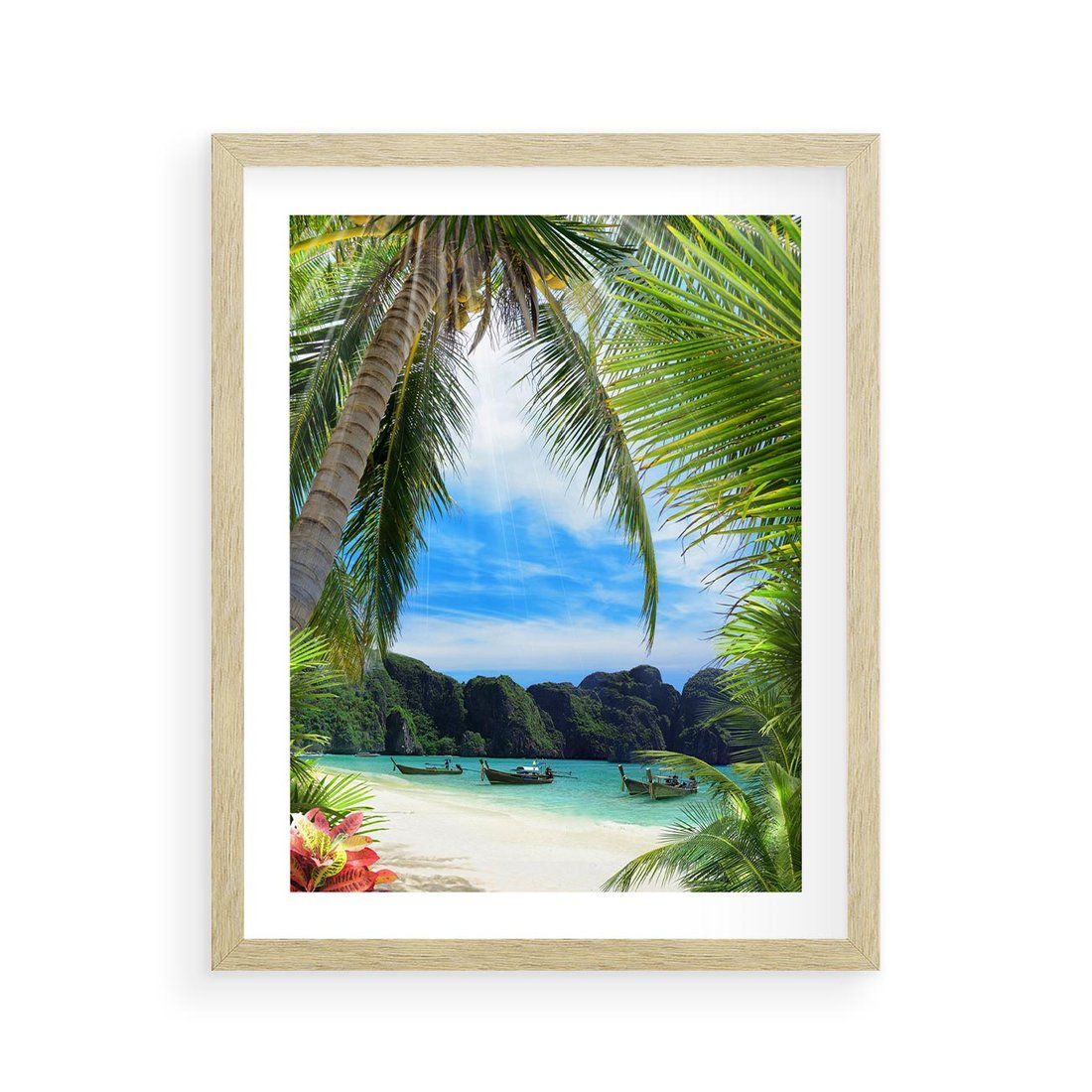 Plakat w ramie 40x50 - Palmy tańczące na tropikalnej plaży - palmy, plaża - rama drewno