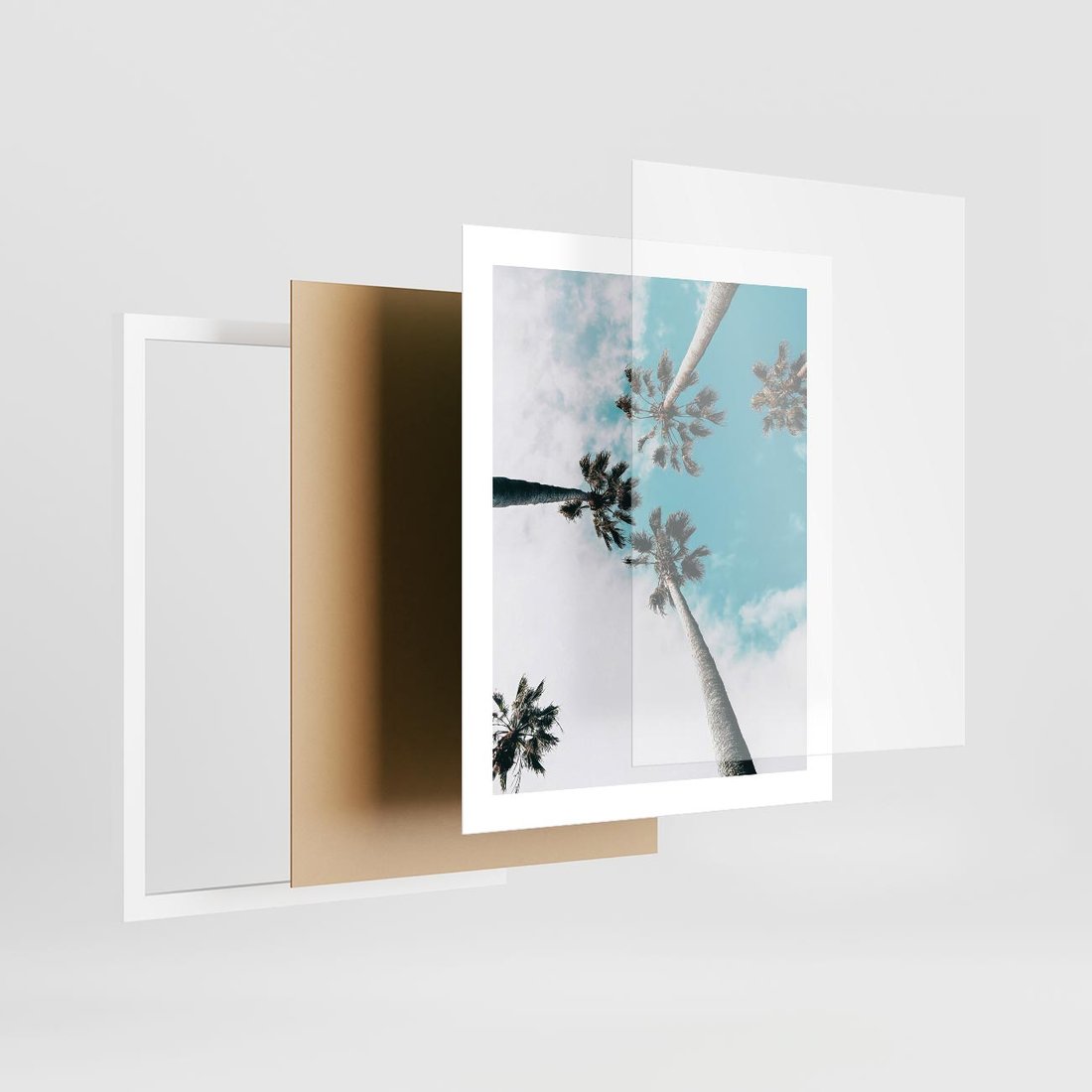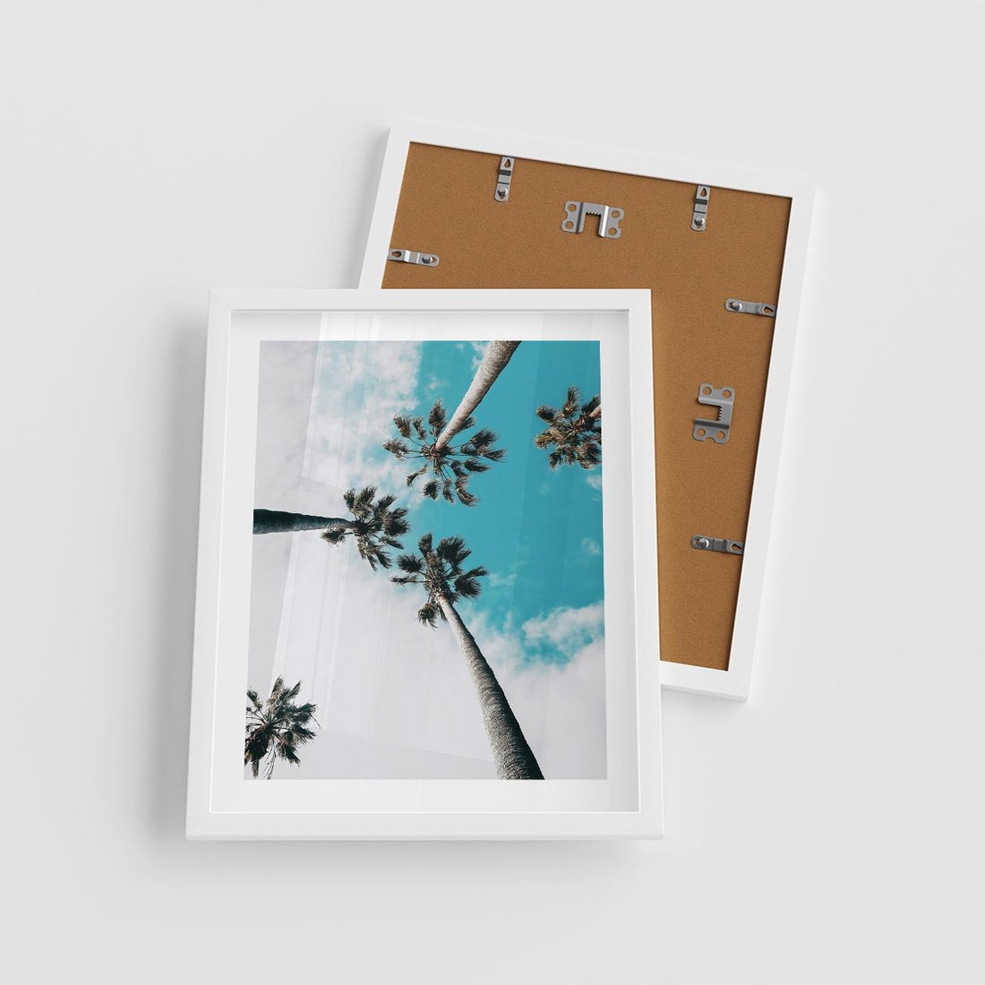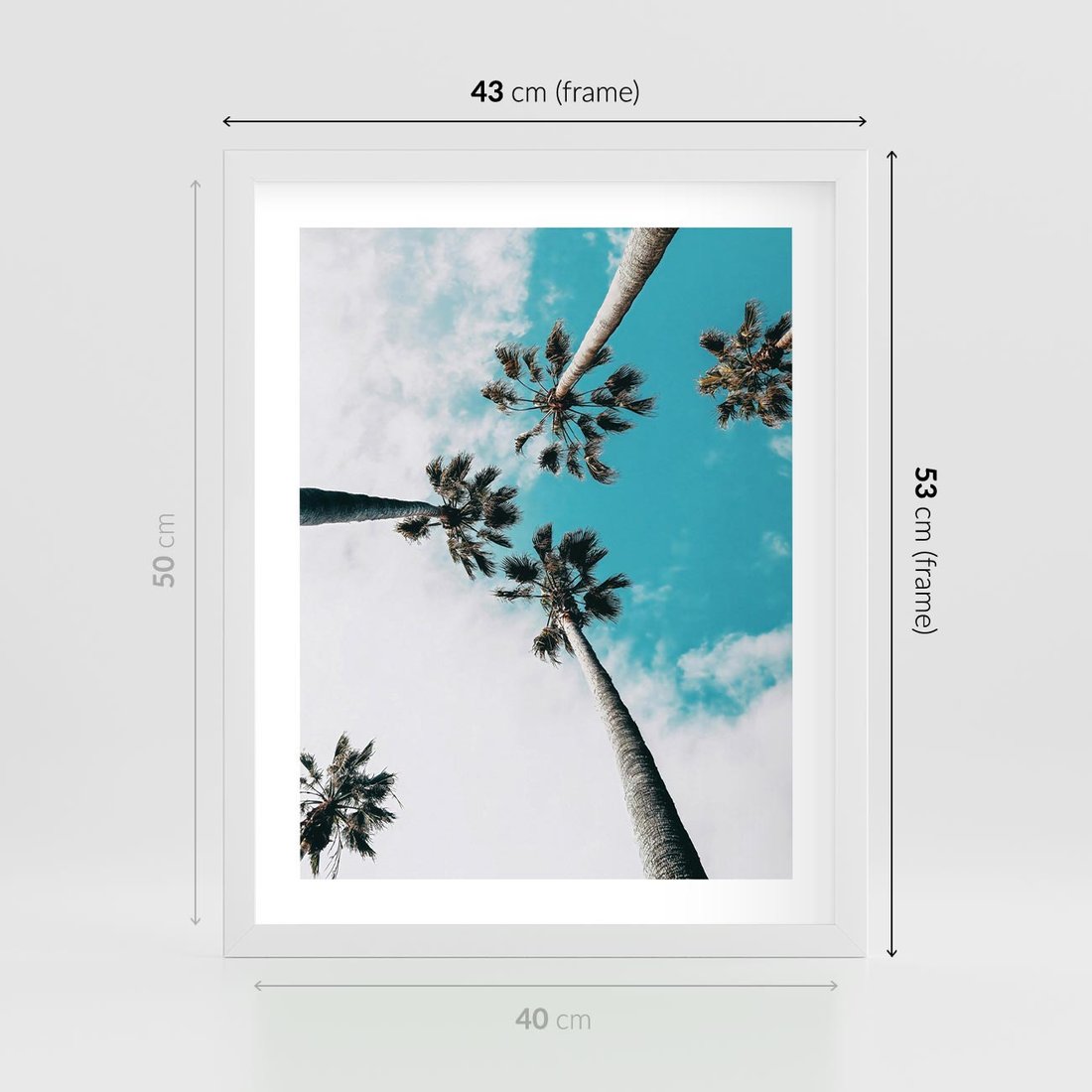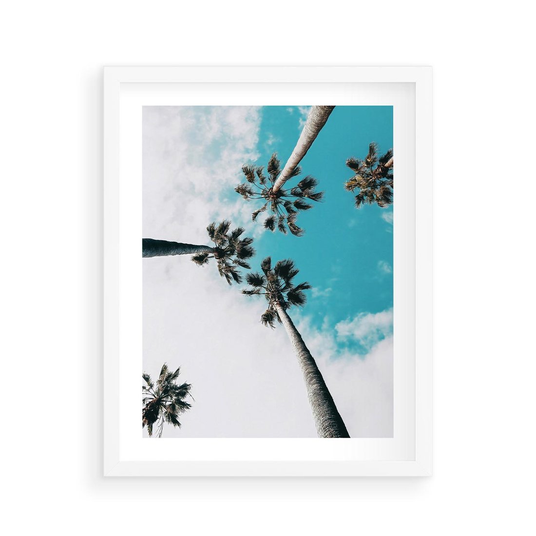 Plakat w ramie 40x50 - Palmy w Gorącym Niebie - palmy, ujęcie z dołu - rama biała