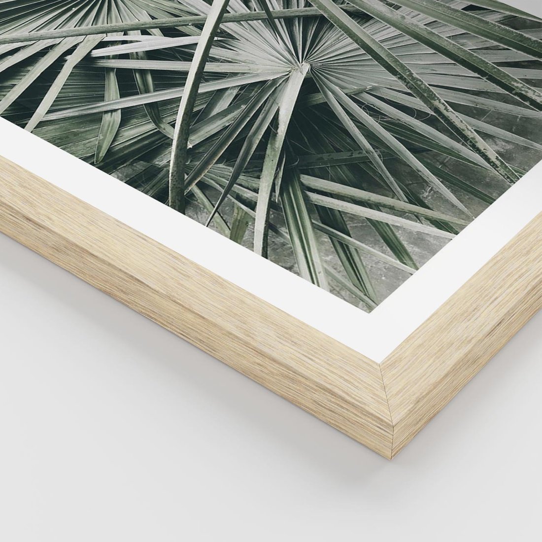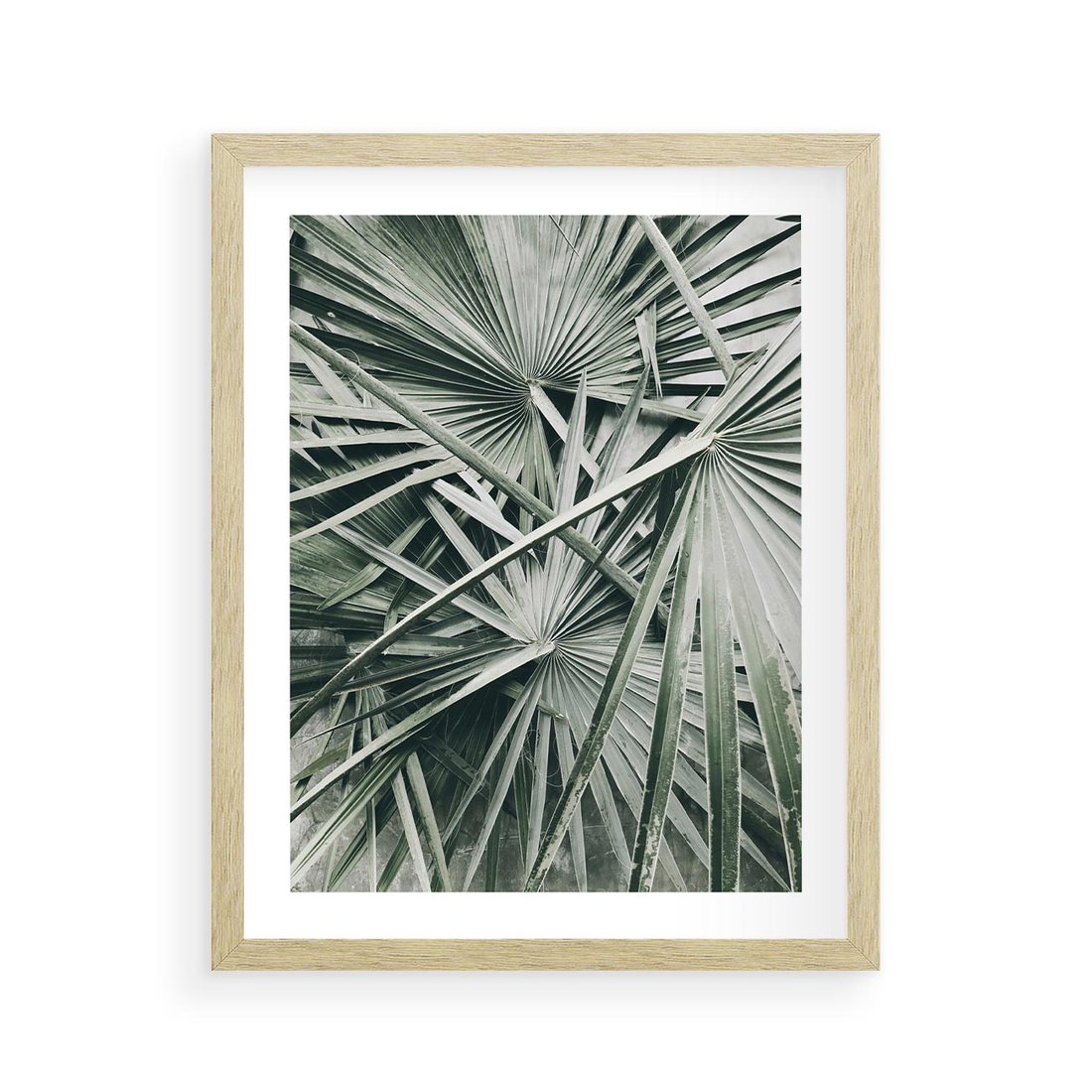Plakat w ramie 40x50 - Palmy w Zgaszonej Zieleni - palmy, tropikalne liście - rama drewno
